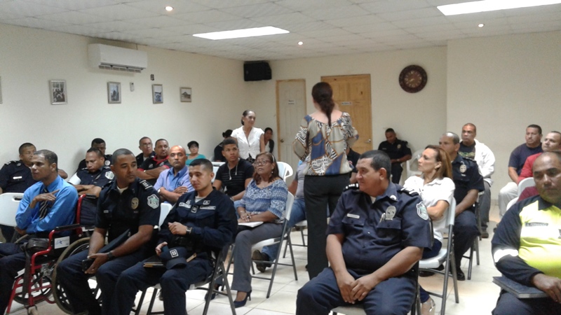 Un total de 50 líderes comunitarios del distrito de Arraiján participaron éste miércoles 7 de junio en la reunión informativa mensual que realiza la Treceava Zona Policial. El encuentro organizado por la Oficina de Seguridad Ciudadana fue presidido por los Comisionados Luis Navarro y José Flores, Jefe y Subjefe Policial. Los jefes encargados de las cuatro áreas policiales que componen ésta dependencia policial expusieron las actividades administrativas desarrolladas por la Policía Nacional en cada corregimiento, tales como: acercamiento y seguimiento de los programas de Seguridad Ciudadana, las visitas domiciliarias. También hablaron sobre los programas de Desarrollo Humano implementados por el Servicio de Niñez y Adolescencia en cada centro educativo que buscan prevenir el uso de drogas y pandillas. En el marco operativo, se habló sobre las acciones preventivas que fueron puestas en ejecución durante el pasado mes en cada sector. El Comisionado Luis Navarro, reiteró que estas reuniones se continuaran realizando mensualmente con el objetivo de mantener la comunicación, a la vez les reiteró las medidas de seguridad personal que deben tener al estar y salir de sus casas. Como invitados participaron la Licenciada Dayra Botello, Fiscal Superior de Adolescentes, quien aclaró algunas inquietudes referentes al trato al menor, el licenciado Raúl Rodríguez, Fiscal de Atención Primara en turno, Licenciado Máximo Mojica, Asesor Legal del Municipio y el Licenciado Edgar Navarro del Ministerio de Desarrollo Social.