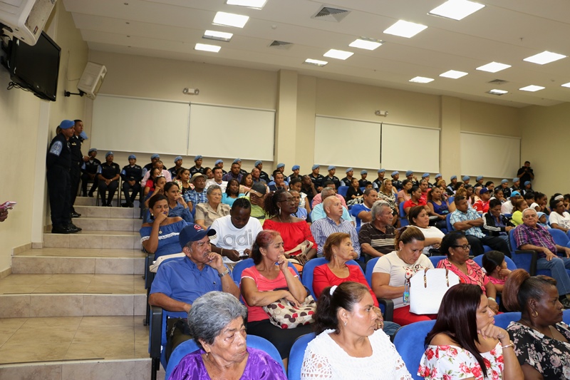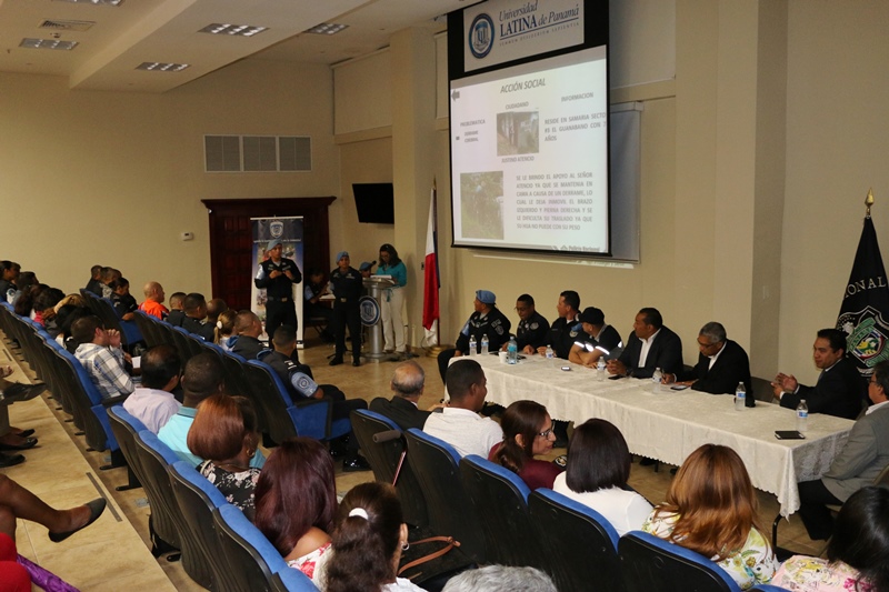 Unidades de la Unidad Preventiva Comunitaria (UPC) de la Segunda Región Policial de San Miguelito realizó una reunión de rendición de cuentas con líderes comunitarios de este distrito, en el Salón de Conferencias de la Universidad Latina ubicada en la vía Ricardo J. Alfaro. El acto contó con la presencia del Subdirector General de la Policía Nacional Alonso Vega Pino y dirigido por el Comisionado Raymundo Barroso, Jefe de la UPC de Samaria. El Subdirector General de la Policía Nacional, dijo que la entidad seguirá su lucha frontal contra la delincuencia, apoyando a los panameños a través de programas preventivos y presencia en los diversos cuadrantes o sectores. En esta reunión fueron los agentes, cabos y sargentos quienes recorren todos los días los sectores o cuadrantes en Samaria, quienes explicaron cómo esta unidad comunitaria ha logrado colaborar con la ciudadanía, en la reparación de luminarias, eliminación de herbazales y chatarras que sirven de escondite a los delincuentes. Explicaron como en coordinación con los integrantes del programa de seguridad ciudadana “Vecinos Vigilantes” han logrado desarticular puestos de ventas de drogas, así como la captura de peligrosos sujetos que portaban armas de fuego, entre otros logros en materia de seguridad. Finalmente se hizo entrega de un certificado de agradecimiento al Comisionado Raymundo Barroso, Jefe de la Unidad Preventiva Comunitaria por su loable labor en favor de las residentes en este distrito. En la actividad también estaban presentes el Ing. Vladimir Herrera, Director de Seguridad Municipal: así como los Comisionados Carlos Ortíz, Roberto Castillo, Francisco Asprilla; los Subcomisionados Samuel Nieto y Manuel Zorrilla entre otros uniformados. Igualmente, Erick Portocarrero, Honorable Representante del corregimiento Belisario Porras, el Honorable Omar Montilla Representante de Mateo Iturralde: el Lic Antonio Saldaña del Departamento Contra la Violencia de la Alcaldía de San Miguelito y el Lic. Félix Cooks, Director de Desarrollo Comunitario en San Miguelito.