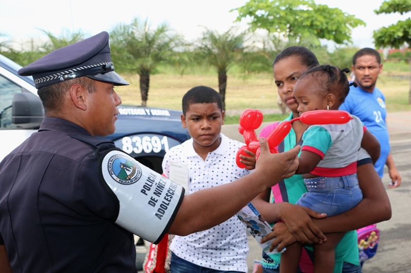 Niños, jóvenes y adultos participaron en el lanzamiento oficial de la actividad social denominada “Niños y Adolescentes Emprendedores en el Rescate de la Convivencia Ciudadana” que se llevó a cabo este sábado 10 de junio de 2017, en la provincia de Colón. Los pequeños de la casa disfrutaron de los diversos juegos preparados, entre ellos: brinca brinca, fútbol, karate, basquetbol, además de las pintas caritas y los payasitos quienes pusieron a grandes y a chicos a reír. Sin duda, los presentes pasaron un día diferente entre vecinos, amigos y familiares, con el fin de mantener la convivencia pacífica y la paz en la provincia de Colón. El comisionado Benjamín Zambrano, jefe de la zona policial, indicó que esta feria interinstitucional busca que todos los colonenses compartan entre sí, resaltando la labor que viene ejecutando la Policía Nacional de la mano con la ciudadanía. Además, participaron las unidades de Niñez y Adolescencia quienes se encargaron de hacer diversos juegos con los niños y la Policía Ecológica, mostrándoles a todos la importancia de cuidar y proteger la fauna y flora del país. Este evento contó con la presencia del Ministro de Seguridad Pública Alexis Betancourt y el Subdirector de la Policía Nacional Alonso Vega Pino, también, dijeron presente las instituciones públicas, de la provincia de Colón y autoridades locales.