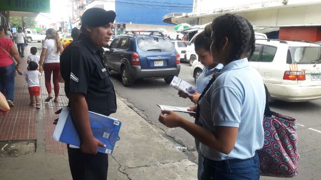 Una de las prioridades de la Policía Nacional, es la de seguir realizando actividades de acercamiento con la comunidad, así como la inclusión de los jóvenes a la Institución. Hoy las unidades del Departamento de Reclutamiento y Selección de la 4ta. Zona Policial de Chiriquí, continúan efectuando volanteos en el Parque Cervantes de la ciudad de David. Esta actividad se da con la finalidad de invitar a todos los jóvenes para que se integren a la Primera Institución de Seguridad Pública. Igualmente, se les habló de las fases del proceso de reclutamiento, los requisitos para la Escuela de Oficiales de Policía y para Agente de Policía, así como los beneficios que ofrece esta Institución |