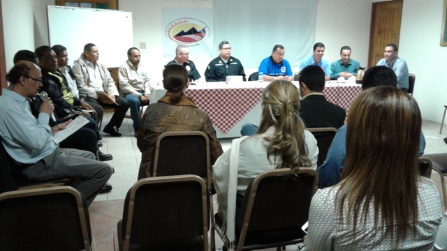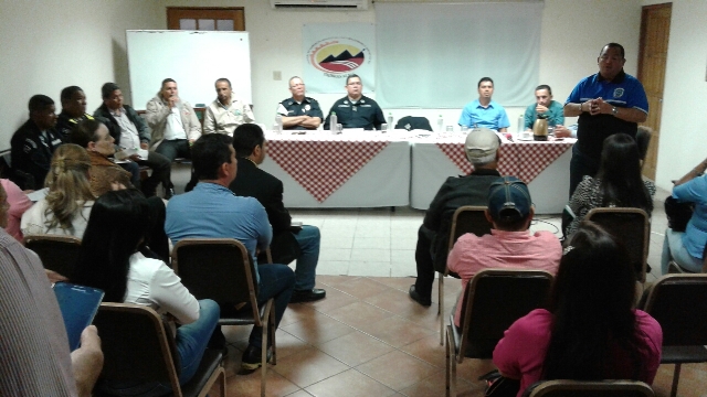 El Director General de la Policía Nacional, Comisionado Omar Ariel Pinzón Marín, realizó una gira de trabajo, donde se reunió con diferentes autoridades de la provincia de Chiriquí. Junto al Comisionado Julio Cesar Lasso, encargado de Inspectoría General de la Policía Nacional, visitaron la Subestación Policial de David, donde se reunió con el Comisionado Eric Javier Amaya Sánchez, Jefe de la 4ta. Zona Policial de Chiriquí y su equipo de trabajo, explicando las acciones preventivas que realiza la zona en beneficio de la comunidad. Siguiendo con la agenda de trabajo, asistieron a una reunión en un hotel de la comunidad de Volcán, donde estuvo presente el Gobernador de la provincia, Licenciado Hugo Méndez y autoridades del distrito de Bugaba y Volcán. En esta reunión el jefe policial escuchó y dialogó con los representantes de la Cámara de Comercio, transportistas, Agricultores, miembros de Seguridad Ciudadana del corregimiento de Volcán, igualmente atendió a los señores de la prensa. Por otro lado, estuvo verificando los avances de los nuevos puestos policiales que se construyen en la provincia como son el de la 5ta. Barriada y Gariche en el distrito de Bugaba y el de Montilla en David. El Director General hizo un alto para visitar al agente Carlos Beitía, de la Unidad Motorizada “Lince”, quien se encuentra recluido en un centro hospitalario de la ciudad de David, tras haber sufrido en días pasado un accidente de tránsito al momento que se dirigía a atender una situación mientras prestaba su servicio policial. |