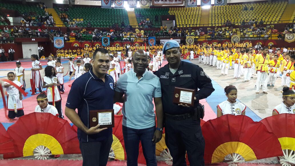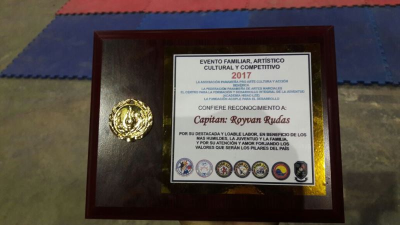 El capitán Royvan Rudas y el teniente Francisco Baloy, ambos de la Unidad Preventiva Comunitaria (UPC) de la Policía Nacional recibieron un reconocimiento por parte de los miembros de la reconocida academia de artes marciales, Hisao Lee por la labor que realizan a favor de la niñez de las comunidades de Curundú y Samaria. La entrega de este reconocimiento se dio durante un evento deportivo realizado este fin de semana, en presencia de altos directivos de esta escuela y miembros de la Asociación Panameña de Artes Marciales. El maestro Fabio Pérez, fundador de esta escuela y quien se ha destaco en importantes torneos a nivel nacional e internacional que le han otorgado el título de Shihan dijo que el trabajo que ambos oficiales realizan en estas comunidades se identifica con el objetivo de esta academia que, desde un inicio, es la de ayudar a la niñez y a la juventud en cuanto a la orientación, disciplina y respeto que deben tener hacia los demás. “Nos complace reconocer el trabajo que realizan por brindar oportunidades y marcar la diferencia en estos lugares, a través del deporte”, expresó Pérez. En la actualidad, el capitán Royvan Rudas y el teniente Francisco Baloy enseñan a los niños karate y otras disciplinas de las artes marciales, logrando incluso dejar en alto al país en competencias internacionales.