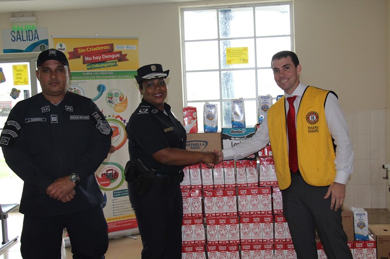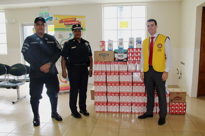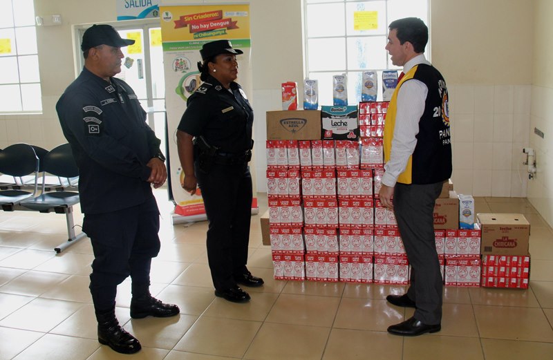 Unidades de la Policía Nacional entregaron una donación al Club Activo 20-30 de Panamá, en su trigésima novena versión de la Lechetón 20-30. Esta entrega estuvo a cargo de la Mayor Mery Palacios en compañía del capitán Javier. La importante donación fue recibida por el licenciado Juan Pablo Jácome en representación del Club Activo 20-30. La lechetón es una actividad que se realiza desde hace 39 años, consistente en la recolección de leche para miles de niños y adultos mayores en Panamá con miras a combatir la desnutrición. La Policía Nacional continuara apoyando estas obras sociales para el beneficio de la población panameña. |