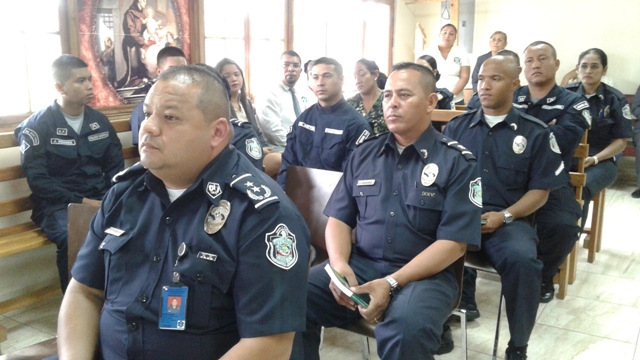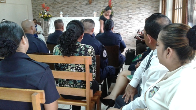 Miembros juramentados y no juramentados de la 4ta. Zona Policial de Chiriquí, participaron de una misa de Acción de Gracias, en conmemoración al 5to. aniversario de la Capilla "San Antonio de Padua", de esta zona policial. Esta misa fue auspiciada por el Padre Heriberto Ríos, Capellán de la zona, quien se dirigió a los presentes para recordarles que Dios es Amor y que debemos amar al prójimo y no guardar rencores en nuestros corazones. Al final de la eucaristía se les dio un recordatorio a todos los presentes y se les ofreció un brindis, quienes compartieron en armonía. |