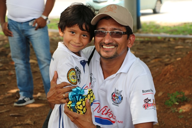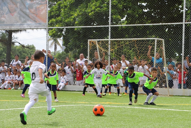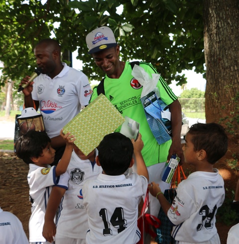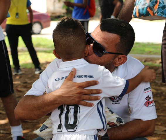 Un convivio deportivo entre padres, madres y niños de la Academia de Fútbol Sociedad Deportiva Atlético Nacional se llevó a cabo la mañana de este sábado 17 de junio en la cancha sintética de la sede policial. Esta actividad se llevó a cabo como parte de la celebración del “Día del Padre”, realizando partidos de fútbol en las categorías sub 5 y sub 7, enfrentándose el equipo de la institución con el de la academia de nuestro seleccionado panameño Román Torres. Seguido, miembros del Directorio de la Policía Nacional se enfrentaron en un juego contra los padres de los niños de la academia, al igual que sus madres que participaron conformando dos equipos femeninos cerrando con las actividades deportivas. En esta actividad estuvo el Director General, Omar Ariel Pinzón quien dijo que este convivio tuvo como objetivo compartir un ambiente familiar y así fortalecer el lazo Policía-comunidad mediante actividades de convivencia pacífica. Al final los pequeños hicieron entrega de regalos a cada padre de familia que los acompañaban y a sus entrenadores físicos. |