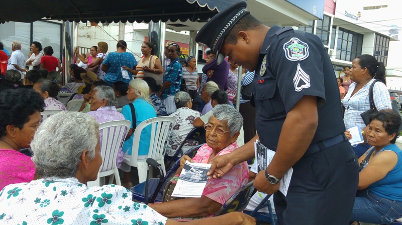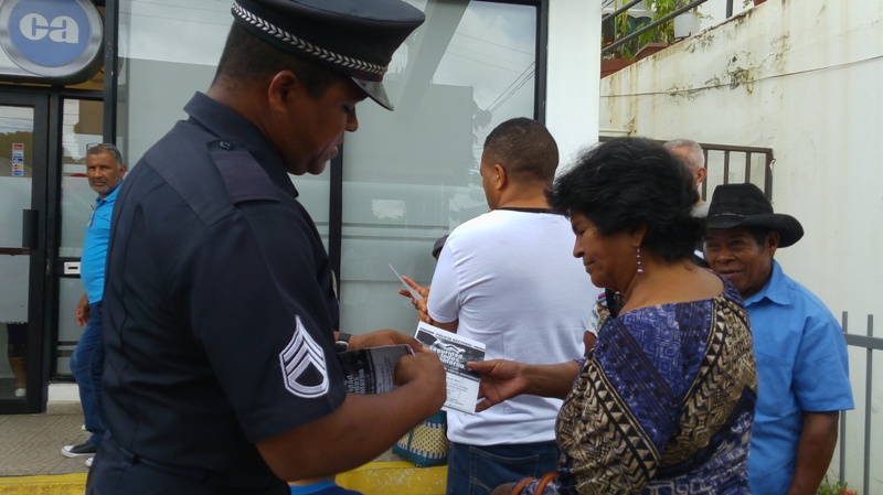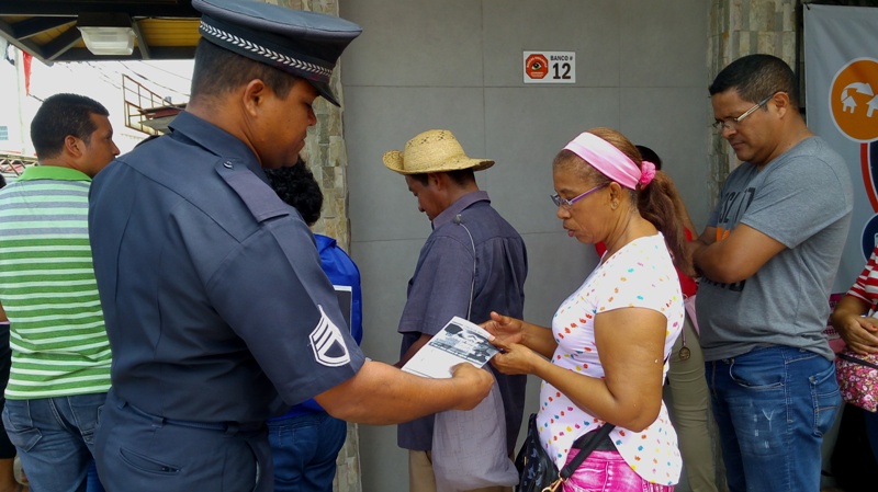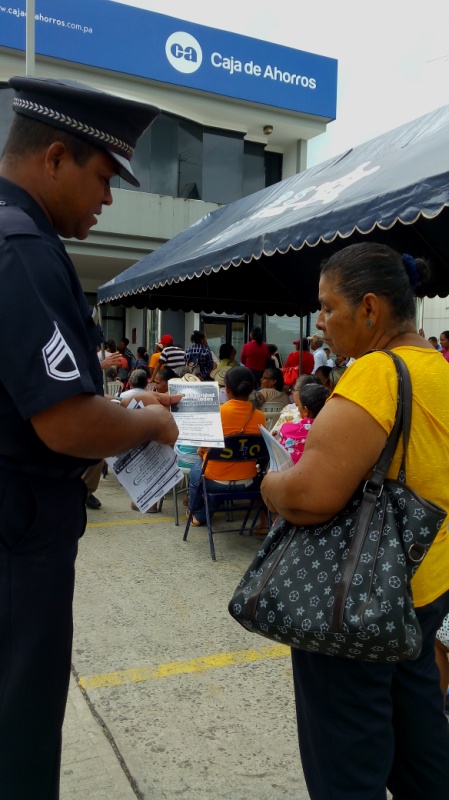 Con la finalidad que la ciudadanía se mantenga informada en materia de seguridad y de prevención, unidades del Departamento de Seguridad Ciudadana de la 2da Zona Policial, realizaron un volanteo en las diferentes aéreas bancarias de la provincia. El sargento Algis Bethancourth manifestó que el objetivo principal es orientar y educar a las personas precisamente en temas de seguridad para poder lograr frustrar hechos delictivos que afectan nuestras comunidades. Con el pago de 100 a los 65, red de oportunidades, beca universal es importante mantener a las personas orientadas de no cometer equivocaciones en favor de los amigos de lo ajeno, enfatizó el sargento Bethancourt. La respuesta del público no se hizo esperar agradecieron la acción de la Policía Nacional, por llevar esta campaña de volanteo preventivo que beneficia a todos los ciudadanos. Hay que destacar que el jefe de la Zona de Coclé el comisionado Aníbal Prados, expresó que la Policía Nacional se mantendrá realizando estas jornadas de volanteo en la provincia, para llevar el mensaje preventivo a cada ciudadano, concientizándolo de que la seguridad comienza por uno mismo.