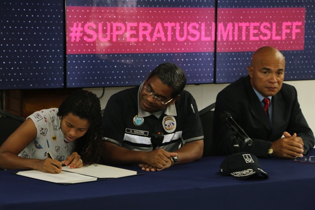 Este viernes 23 de junio la Policía Nacional de Panamá presentó en conferencia de prensa su selección femenino Sub 23 de la Sociedad Deportiva Atlético Nacional. El Comisionado Aldo Macre, presidente del Club Deportivo Atlético Nacional dio la bienvenida a las 22 integrantes de este nuevo equipo femenino, a quienes exhortó a realizar su mejor esfuerzo. Explicó que esta liga femenina de futbol forma parte de un proyecto de seguridad que busca rescatar niñas, jóvenes y adolescentes de las garras del vicio y los malos pasos al igual que se está haciendo con los varones. Las 22 jugadoras presentes procedieron a la firma de compromiso para representar de manera oficial al equipo femenino Atlético Nacional además de participar en un acto oficial de entrega de camisetas. La Liga de Fútbol Femenino de Panamá es auspiciada por FEPAFUT y estará integrada inicialmente por los siguientes equipos: San Francisco Futbol Club; Sporting SM; Atlético Nacional; Universidad Tecnológica de Panamá, Chorrillo Futbol Club; Brujas Fútbol Club, Azuero Futbol Club y Academia FMS. En la conferencia de prensa estuvo presente los Comisionados Aldo Marce y Juan Cerezo, así como el Director Técnico Erick “Chino” Ortega, un entrenador deportivo de vasta experiencia. Este sábado 24 de junio, el equipo femenino Sub 23 de la Sociedad Deportiva Atlético Nacional se enfrentará en su primer partido contra el equipo Chorrillo Fútbol Club en el Estadio Maracaná.