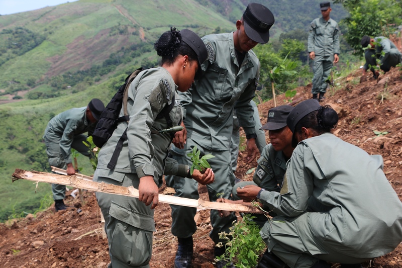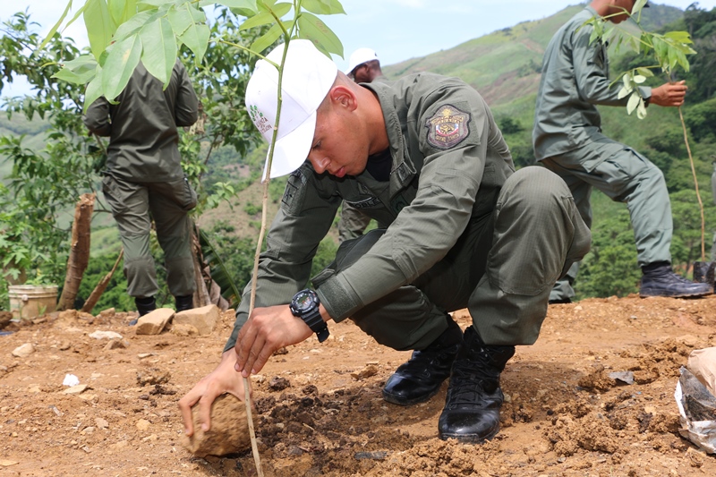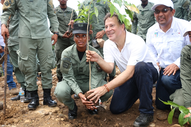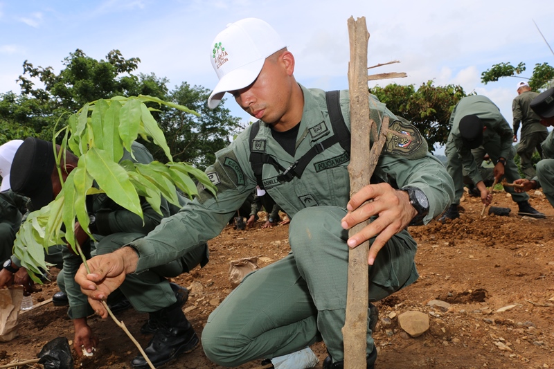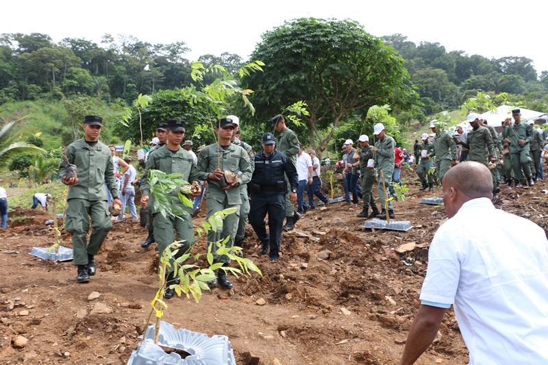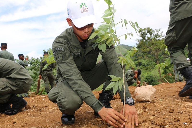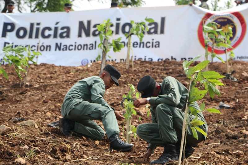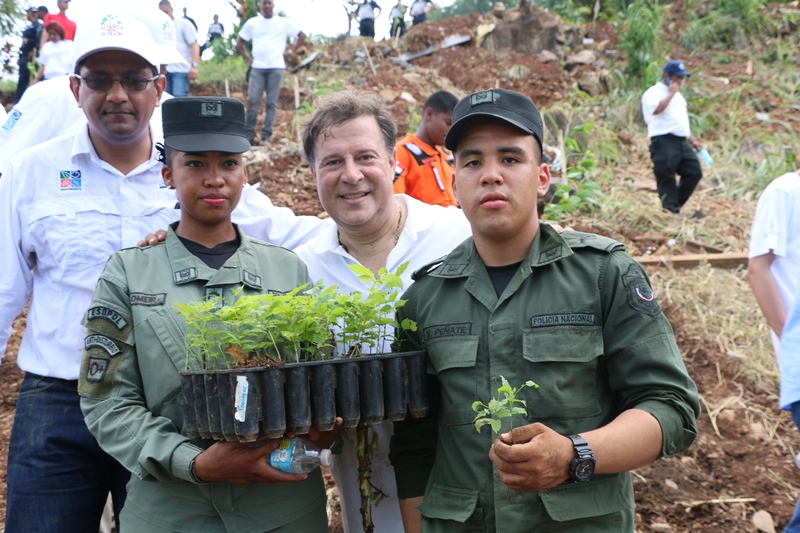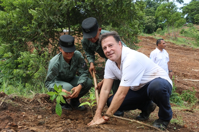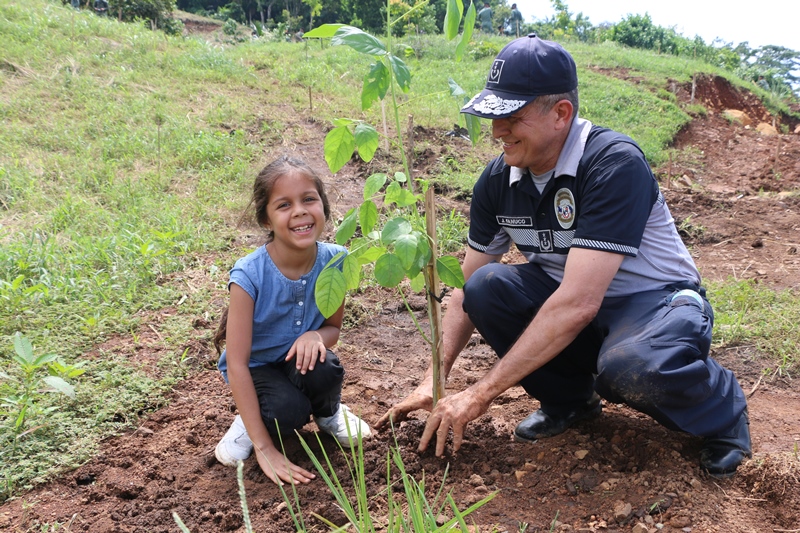 Unidades de la Policía Nacional acompañaron al Presidente de la Republica Juan Carlos Varela en la la tercera jornada de reforestación de árboles que se desarrolló en Cerro Galera, en Arraiján, celebrando el “Día de la Reforestación”. Por varias horas miembros del Directorio de la Policía Nacional junto a unidades y cadetes de la escuela de Oficiales de Policía Dr. Justo Arosemena, realizaron siembra de plantones en diversos puntos de él lugar seleccionado. Esta actividad denominad “La Alianza por el Millón de Hectáreas” fue organizada por el Ministerio de Ambiente, la cual tiene como objetivo reforestar y conservar la flora de Panamá, para mitigar el cambio climático. Fueron más de 70 plantas que sembraron los voluntarios, en más de 23 puntos del país. La Policía Nacional reafirma su compromiso en cuidar el medio ambiente y es por ello que seguirá participando, protegiendo y conservando los recursos naturales del país.