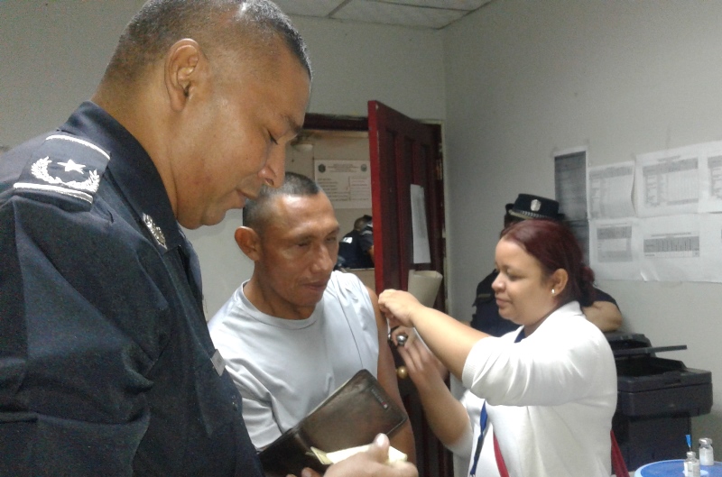 Personal juramentado y no juramentado de la Policía Nacional de servicio en la Treceava Zona Policial participó este viernes 7 de julio en una jornada de vacunación organizada por el personal de enfermería del Minsacapsi de Burunga. La jornada que inició a las 7:00 de la mañana y se extendió hasta el mediodía, se llevó a cabo en la sede de la Policía de Arraiján. Las unidades fueron vacunadas contra el Tétano, Influenza, Sarampión, Rubiola y Neumococo. Los funcionarios de salud reiteraron las medidas de prevención como lavarse constantemente las manos con agua y jabón. |