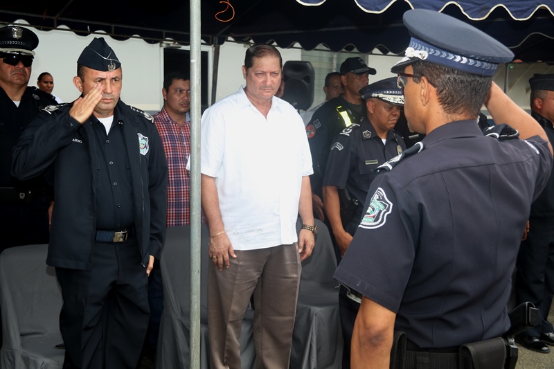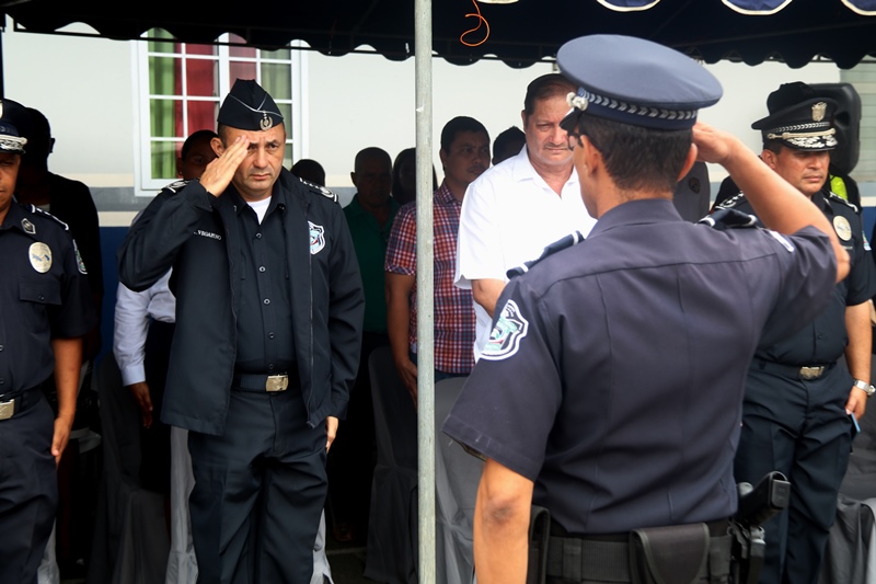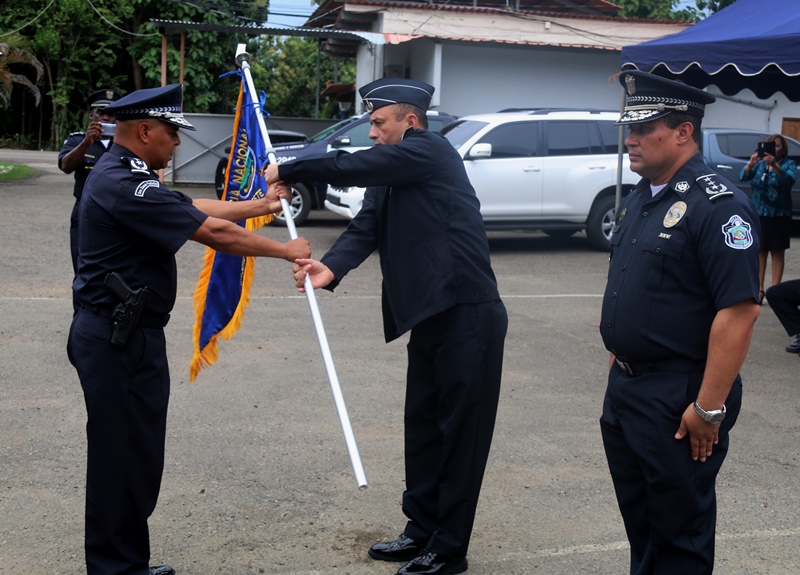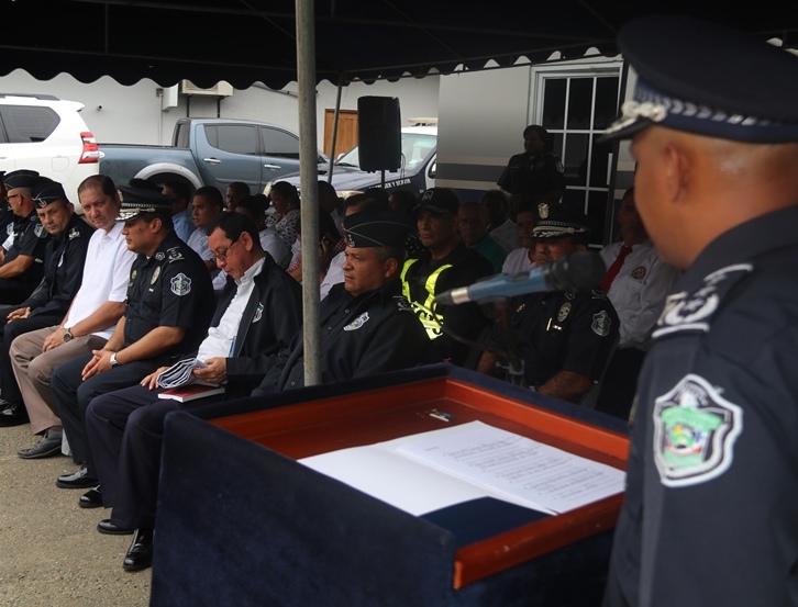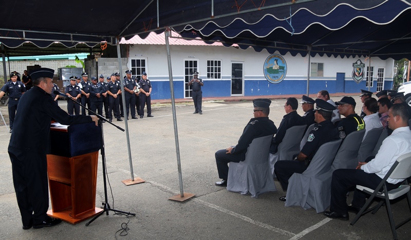 Este lunes 10 de julio fue presentado como jefe de la 5ta Zona de Policía de Chepo al Comisionado Ramón Roca en una ceremonia de cambio de mando que tuvo lugar en la sede de este cuartel policial, donde estuvieron presentes miembros juramentados y no juramentados. El Capellán de la Policía Nacional Edgar Flores, dio gracias a Dios y bendijo el trabajo de Proteger y Servir que realizan las unidades policiales diariamente. El Comisionado Roca reemplaza al Comisionado Abdul Ledezma, quien le hizo entrega del banderín de la zona policial al Subdirector General de la Policía Nacional, Alonso Vega Pino y este a su vez el puesto al nuevo jefe de la Zona. “El trabajo que realiza la Policía Nacional, es en conjunto con las autoridades competentes y la sociedad”, destacó el Subdirector Vega Pino. El comisionado Ramón Roca por su parte manifestó que el esfuerzo que realice será en beneficio de los policías y de la población panameña. “Fortaleceremos los programas de Seguridad Ciudadana, las estrategias con las entidades estatales, autoridades locales, haciendo un frente común para enfrentar la amenaza de la delincuencia criolla y el crimen organizado, flagelos que golpean a os países de la región de la que Panamá no escapa” resaltó Roca. En tanto el comisionado Abdul Ledesma jefe saliente agradeció a cada una de las unidades y los exhortó a seguir trabajando en beneficio de la comunidad. Esta actividad contó con la presencia del señor Olmedo Barrios, Alcalde de Chepo y coordinadores de los diversos programas de seguridad ciudadana. |