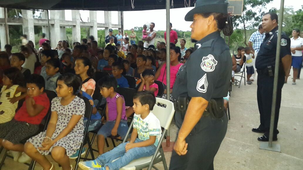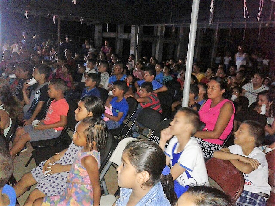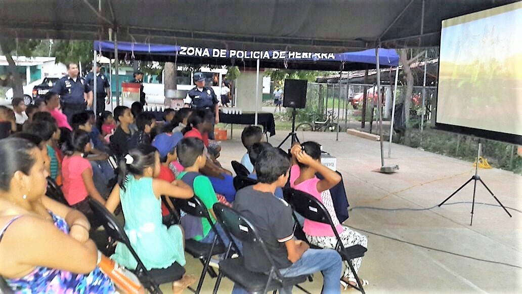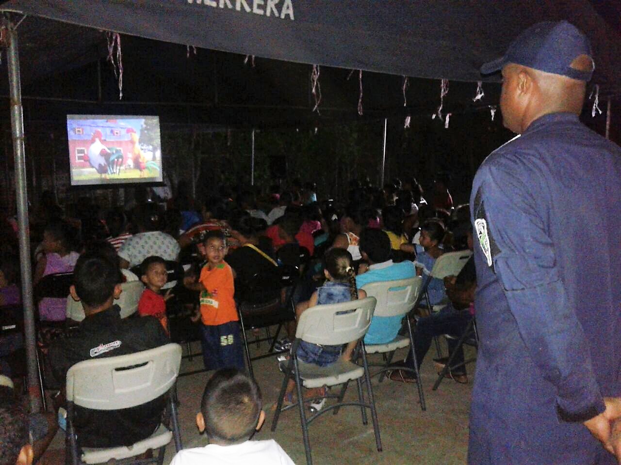Más de 300 niños de la comunidad de Boca de Parita en la provincia de Herrera disfrutaron de un día de mucha diversión viendo la película “Un Gallo con Muchos Huevos” junto a la unidades de esta zona policial, en la Cancha Publica de esa comunidad. En la actividad hubo muchas golosinas y refresco y los pequeños se divirtieron a montón y la pasaron muy bien junto a los miembros de la Policía Nacional. En la actividad estuvo el comisionado Ismael Herrera Delgado, jefe de la Zona de Policía de Herrera, acompañado con su equipo de trabajo. |