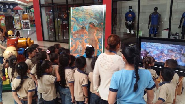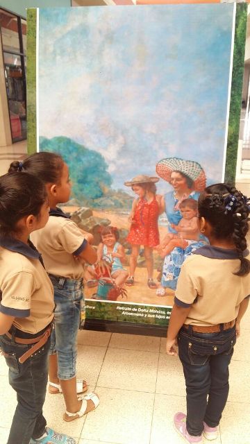 Niños del Centro de Atención Integral de la Primera Infancia (CAIPI), Fuente del Saber de la 4ta. Zona Policial junto a sus maestros, visitaron la exhibición de las obras del artista Roberto Lewis, en el salón de reuniones del Mall Chiriquí. Muy impresionados por la belleza de estas obras colocadas en mural, quedaron los pequeñines, quienes aprovecharon la ocasión para demostrar sus dotes de artista plasmado en sus dibujos. A finalizar, los niños recibieron una invitación por parte del Instituto Nacional de Cultura (INAC), a conocer más de este prolífico pintor visitando El Salón de Los Tamarindos, cuyos bellos murales revisten las paredes del Comedor Principal en el Palacio de Las Garzas. |