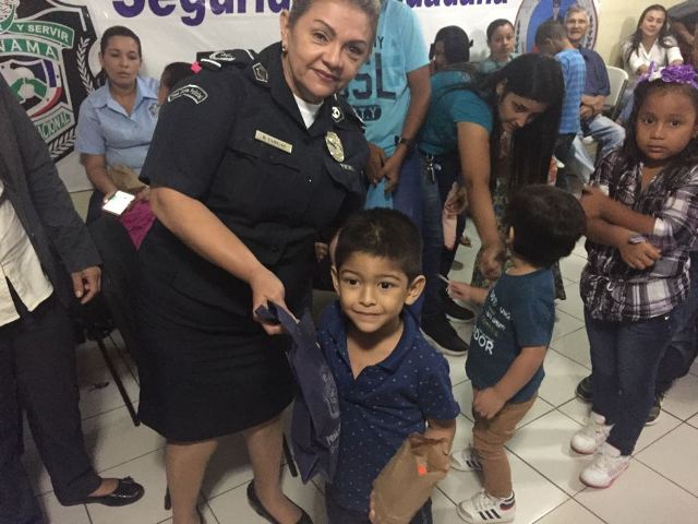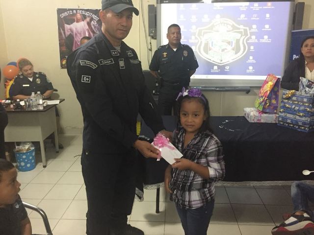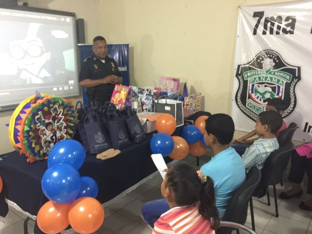 Piñatas, regalos y sobre todo sonrisas, unidades de la 7Ma Zona Policial de Los Santos celebraron junto a sus hijos el Día del Niño. El Comisionado Frank Pinilla, jefe de la 7ma Zona; el Comisionado Rene Herrera, ejecutivo de la Zona, junto al Personal Juramentado y No Juramentado, organizaron este pequeño agasajo para los pequeñines. Los niños disfrutaron de película y palomitas de maíz, después se les repartió unas canastitas, un dulce, se rompió la piñata y el final para sorpresa de los niños se repartieron unos regalos por parte de las unidades de cada departamento. Los niños disfrutaron de este día y compartiendo con nuestras unidades, reforzando así el lazo de la Policía Nacional con la niñez panameña. |
