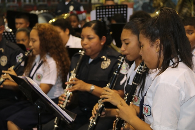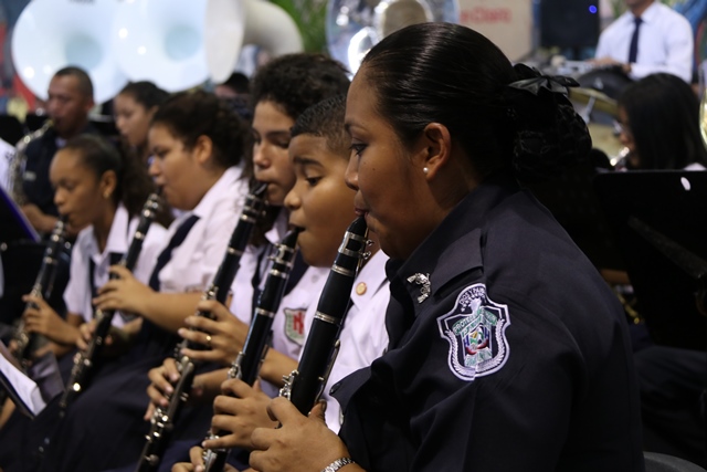 La Banda de Concierto de la Policía Nacional participó este viernes 14 de julio en las actividades conmemorativas a los 108 años del Instituto Nacional de Panamá. La banda se unieron a los integrantes de la banda de música de este colegio, en un concierto donde deleitaron al público con sus alegres melodías. Está conformada por miembros juramentados y no juramentados que cumplen con buena fe la doble labor de “Proteger y Servir” a la ciudadanía con música, llevando alegría en diferentes actividades. En la celebración el Instituto Nacional participaron estudiantes, docentes y egresados de este plantel educativo entre los que hay unidades de la Policía Nacional.