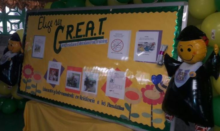 Unos 300 estudiantes de la escuela Fe y Alegría, ubicada en el corregimiento de Curundú fueron capacitados para resistir a las pandillas, presión de grupo, acoso escolar y a las drogas, además de fortalecer su autoestima, mediante el programa de Educación y Entrenamiento en Resistencia a las Pandillas (G.R.E.A.T). Se trata de alumnos de 4to, 5to y 6to grado que recibieron sus certificados tras haber culminado su curso, que los convierte en agentes multiplicadores de cambio. Durante la ceremonia de graduación, el subcomisionado y jefe de la Unidad Preventiva Comunitaria (UPC) de la Primera Región Metropolitana de la Policía Nacional, Samuel Nieto dijo que a través de estos programas se suman los niños y jóvenes a un cambio positivo, siendo ellos los actores activos en promover la paz en su barrio y en sus escuelas. En la actividad también estuvieron presente el comisionado y jefe de la UPC en Samaria, Raymundo Barroso, autoridades del plantel educativo e invitados especiales, quienes además disfrutaron de una presentación folclórica por parte de los estudiantes.