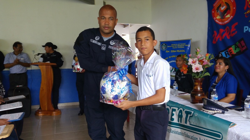 Unos 40 estudiantes del C.E.B.G. El Farallón en Río Hato de Antón, provincia de Coclé, culminaron con éxito el programa que lleva adelante la Policía Nacional "Educación y Entrenamiento en Resistencia a las Pandillas El programa consistió en la presentación de danzas y bailes populares por alumnos de Educación Inicial y declamaciones por los del VI grado quienes tomaron en cuenta el valor del Respeto como base fundamental para una convivencia sana y pacífica entre los miembros de una sociedad. En tanto, se hizo entrega de certificados y obsequios a los tres primeros puestos, los mismos alumnos del VI grado, Aarón Jaramillo, Julio Mariatriaga, Taile Castillero y Adán Jaramillo. Por su parte Aarón Jaramillo, manifestó que estaban emocionados con las enseñanzas que habían recibido de parte del instructor de la Policía Nacional, el sargento Erick Sánchez, tomando buenas decisiones y poder decir "No a las drogas y a las pandillas". La directora de la escuela la profesora Susana Guillen, agradeció a la Policía Nacional por orientar a los estudiantes del CEBG de El Farallón y crear conciencia de lo malo y bueno a que se exponen diariamente. Finalmente el comisionado Aníbal Prados manifestó que el trabajo continuará realizándose en cada escuela de la provincia por el bien de nuestros niños y niñas, los programas de la Policía Nacional son herramientas en la prevención, pero necesitamos que todos los actores se comprometan educadores, padres de familias la comunidad entera. En el acto de ceremonia estuvieron presente el jefe de la Zona Policial el comisionado Aníbal Prados, el ejecutivo de la Zona comisionado Carlos Bethancourt, el subcomisionado Dudley Steel, la directora del plantel la profesora Susana Guillen, unidades de niñez y adolescencia, administrativos, educadores, padres de familias, que se dieron cita a la significativa ceremonia. |