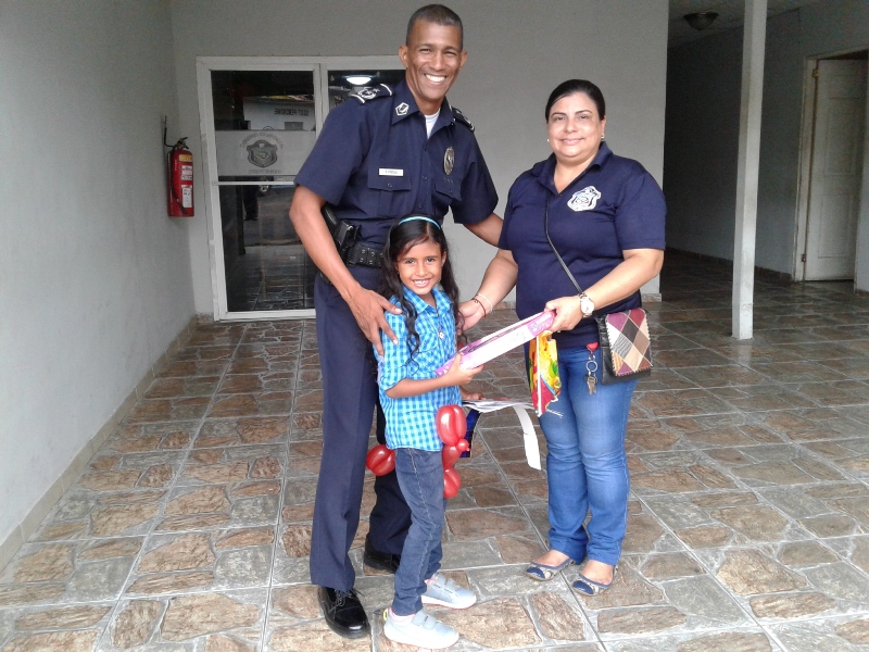 Un ambiente lleno de alegría y diversión, pasaron los hijos de unidades de la 2da Zona Policial en la celebración del día del "Niño y la Niña", en la sede del cuartel central en Penonomé. La actividad organizada por la jefatura de la Zona Policial y los departamentos de trabajo Social y Psicología, con el objetivo de promover la fraternidad y la comprensión entre los pequeños. En el evento estuvieron presente el jefe de la Zona Policial el comisionado Aníbal Prados, el comisionado Carlos Bethancour, el subcomisionado Dudley Steel, quienes hicieron entrega de obsequios a los participantes. Esta actividad que se realizó en horas de la mañana de este miércoles, contemplo juegos, pinta caritas, globoflexia, charlas sobres medidas de "Seguridad Vial", para evitar accidentes en la vías que se conduce. La charla de seguridad vial fue impartida por las cabo Eira Morán y Bety de Gómez quienes con su dinamismo y carisma, ofrecieron a los niñas y niñas las recomendaciones a través de juegos, competencias y una película donde al final se formularon preguntas, que quien contestaba era ganador de un premio. Seguidamente de la película los pequeños disfrutaron de un brindis lleno de sorpresas entre pastel, canastitas, golosinas, helado, hamburguesa entre otros, siendo del agrado de los pequeños. Al finalizar la actividad el jefe de Zona el comisionado Aníbal Prados, felicito a los infantes y los exhorto a ser niños de bien, a estudiar y a valorar el trabajo que con mucho sacrificio realizan sus padres en beneficio de su familia, termino diciendo " MUCHAS FELICIDADES A TODOS USTEDES NIÑOS Y NIÑAS"