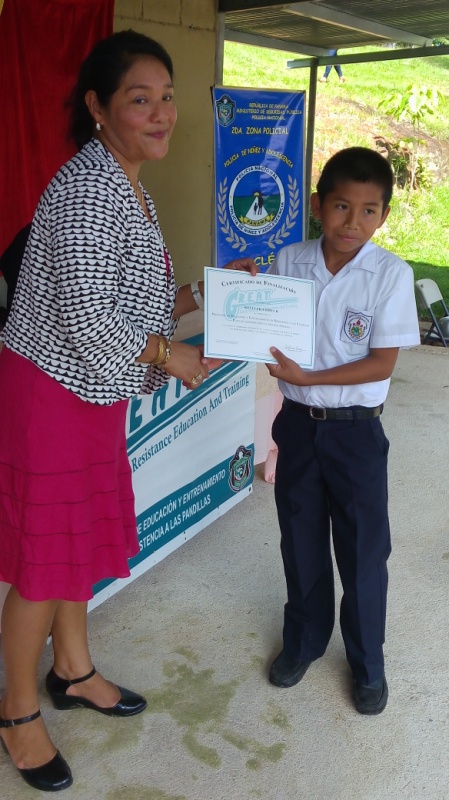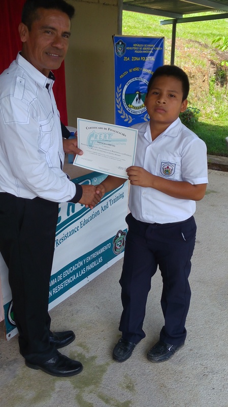 Estudiantes del área Norte de la provincia de Coclé dijeron "NO A LAS PANDILLAS" al culminar con éxito el programa preventivo de la Policía Nacional, Educación y Entrenamiento en Resistencia a las Pandillas (G.R.E.A.T). que busca dotar de conocimiento a la niñez y adolescencia de nuestro país para que eviten el uso y abuso de drogas, armas y violencia. Importante recalcar que estos estudiantes pertenecen a las escuelas Víctor Pérez del corregimiento de Caimito y del centro escolar Mercedes Bustamante en Toabré, pertenecientes a los niveles de IV, V y VI grado, lugares, donde se llevaron a cabo las graduaciones por el departamento de Niñez y Adolescencia de la 2da Zona Policial. El curso fue dirigido por el cabo Carlos González instructor, que manifestó su complacencia al compartir con los estudiantes sus conocimientos en materia de seguridad y prevención a través del programa de G.R.E.A.T. Ambas graduaciones contemplaron presentaciones folklóricas, dedicatorias y obras teatrales en relación a las lecciones aplicadas en el curso. En tanto en la entrega de certificados se otorgó premiaciones a los primeros puestos de las clases impartidas. Además se dieron agradecimientos como el de la estudiante Saray Lorenzo del centro escolar Mercedes Bustamante quien manifestó en nombre de todos sus compañeros las gracias a la Policía Nacional "Por lo aprendido y la más grande satisfacción de ver en sus compañeros y compañeras como agentes multiplicadores, aconsejando a familiares y amigos sobre la responsabilidad que tienen como estudiante, siendo el futuro de nuestro país" termino diciendo la estudiante Lorenzo.
