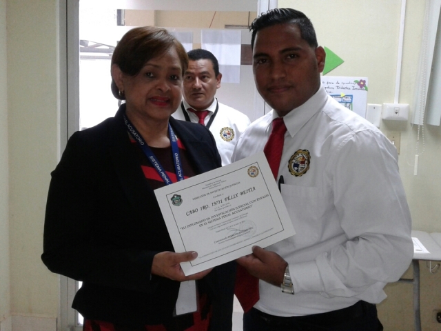 Unas 27 unidades policiales de la Subdirección de Investigación Judicial de las provincias de Chiriquí y Bocas del Toro, terminaron el “IXL Diplomado de Investigación Judicial con Énfasis en el Sistema Penal Acusatorio”. Este Diplomado fue organizado por la Policía Nacional y auspiciado por la Universidad Nacional de Panamá, impartido desde el 3 al 20 de Julio del presente año. En el acto de clausura estuvieron presentes el Comisionado Teófilo Moreno, Ejecutivo de la 4ta. Zona Policial de Chiriquí, la Licenciada Idalgis de Olmos, Fiscal Superior del Tercer Distrito Judicial, Magistrado Jorge de la Torre, Tribunal Superior de Apelación en la provincia, Magister José Dolores Victoria, Decano de la Facultad de Educación de la Universidad Autónoma de Chiriquí. La Licenciada Idalgis de Olmos, Fiscal Superior del Tercer Distrito Judicial, dio las gracias al mayor Teruo Alvia, Jefe de la Sub- Dirección de Investigación Judicial de las provincias de Chiriquí por haber tomado en cuenta al Ministerio Público para que se integraran a esta capacitación. "La DIJ y la Policía Nacional son unos de los principales brazos auxiliares del Ministerio Público y que estas capacitaciones sean beneficiosas para todos, brindando un trabajo eficiente y correcto para la sociedad. Felicidades a los participantes y los instó a que se sigan preparándose, porque este es un sistema que es de aprender, aprender todos los día" agregó la Licenciado Olmos. Por otro lado, el Comisionado Teófilo Moreno, Ejecutivo de la 4ta. Zona Policial de Chiriquí, manifestó que es fiel creyente de la capacitación continua de las unidades policiales, que sigan perfeccionándose para ser mejores cada día. Esta provincia mantiene una relación estrecha con el Ministerio Público, estamos trabajando diariamente en beneficio de la sociedad. "Felicitó a todos los presente y en especial a las unidades policiales por la culminación de su Diplomado" destacó el comisionado Moreno.