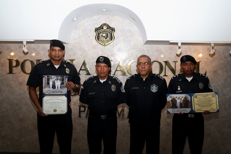Oficiales de servicio en la Unidad Táctica de Operaciones Antidrogas (UTOA) de la Dirección Nacional de los Servicios Policiales Especiales, llegaron a suelo panameño luego de finalizar dos cursos en la Escuela Naval de Entrenamiento e Instrucción Técnica (NAVSCIATTS), en Estados Unidos. El mayor Francisco Gutiérrez jefe de la UTOA, culminó el curso de Estrategia para Líderes Internacionales, llevado a cabo del 20 de junio al 21 julio, donde tocaron temas de derechos humanos, además de realizar visitas a la Federal Bureau of Investigation (FBI), Comando Sur y Administración para el Control de Drogas (DEA). Este curso brinda a los líderes a nivel mundial estrategias y herramientas esenciales para realizar una planificación para la toma de decisiones. En tanto el teniente Saúl Quintero de servicio en la UTOA finalizó el curso de Oficial de Lanchas Patrulleras, el cual inició el 23 de mayo hasta el 21 de julio. En este curso tuvo la participación países como Costa Rica, Colombia, Honduras, Nicaragua y Panamá, en donde cada uno de los integrantes adquirió habilidades para operar embarcaciones en diferentes situaciones. Además conocer la navegación terrestre y nocturna y la manera correcta de manipular arma dentro de las embarcaciones. Estos oficiales acompañados comisionado Javier Rodríguez director del Dinaspe, fueron recibidos por el Secretario General Encargado, el subcomisionado Javier Domínguez, quien los exhortó a compartir con sus compañeros lo aprendido, para brindar un mejor servicio de la comunidad.