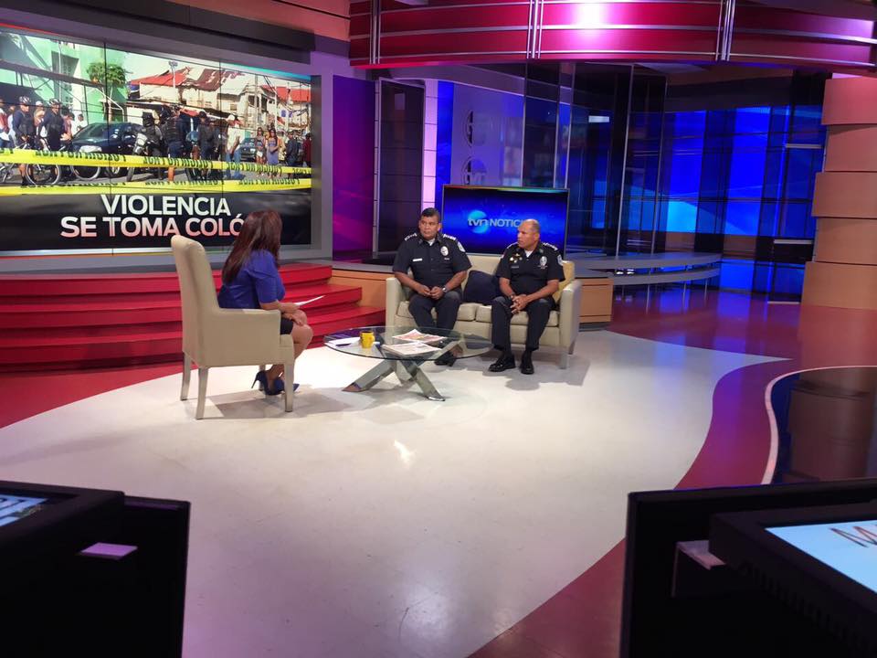 Los Comisionados Benjamín Zambrano y Porfirio Justavino se refirieron a los esfuerzos que realiza la Policía Nacional de Panamá por combatir el narcotráfico, la delincuencia, el crimen organizado y disminuir los índices de homicidios en la provincia de Colón. Ambos altos funcionarios policiales fueron entrevistados por la periodista Castalia Pascual en el Noticiero Matutino de la Televisora Nacional, TVN-2. “En Conjunto con el Ministerio de Seguridad y la Presidencia de la República, y bajo la supervisión del Director General de la Policía Nacional, Omar Pinzón se han llevado medidas preventivas e implementado de manera oportuna los programas de Seguridad Ciudadana y Servicio de Niñez y Adolescencia”, manifestó el Comisionado Zambrano. Zambrano fue enfático al asegurar que las unidades policiales se encuentran 24 horas en las calles, tratando de llevar la seguridad a los residentes de la provincia, lo cual se traduce que en los meses de Junio y Julio hubo una disminución grande en la tasa de delitos y homicidios. Al ser abordado sobre los recientes homicidios, el Comisionado Porfirio Justavino dijo que esa espiral de violencia se debe a que en Colón están los puertos internacionales que son la vanguardia en movimiento comercial de Latinoamérica y obviamente son un atractivo para las personas que manejan el narcotráfico. En su opinión los traficantes tratan de acercar esa droga a las periferias de Colón para luego introducirla en algún barco a fin de llevarla a los grandes mercados de Europa y Centroamérica. Los delincuentes criollos al enterarse que hay droga, vienen y la roban y eso trae entonces que el narcotraficante contrate pandillas del área en Colón para ajusticiar a quienes les robaron. Otros casos de homicidios se dan por viejas rencillas de homicidios que ocurrieron hace 4 o 5 años atrás y que amigos y familiares del difunto deciden que ahora es el tiempo de cobrar venganza. En uno de los homicidios recientes, la víctima no era pandillero sino un muchacho de bien, sin embargo su hermano si mantiene viejas rencillas con otras personas. Finalmente ambos Comisionados de la Policía Nacional de Panamá aseguraron que se continuarán los operativos policiales en la provincia de Colón a fin de mantener el orden y la paz social.