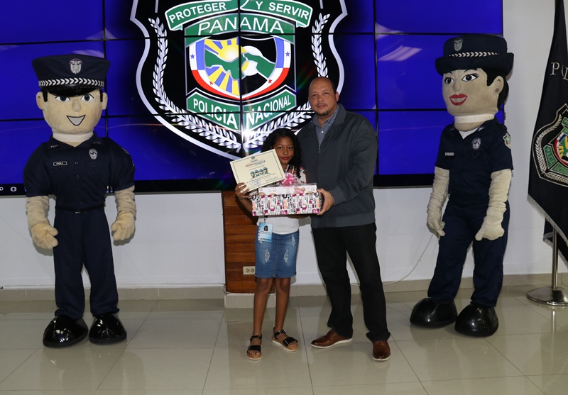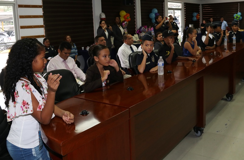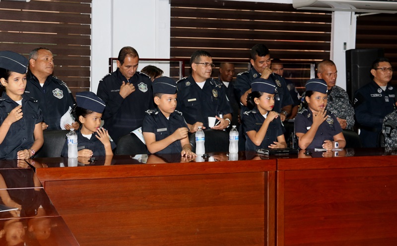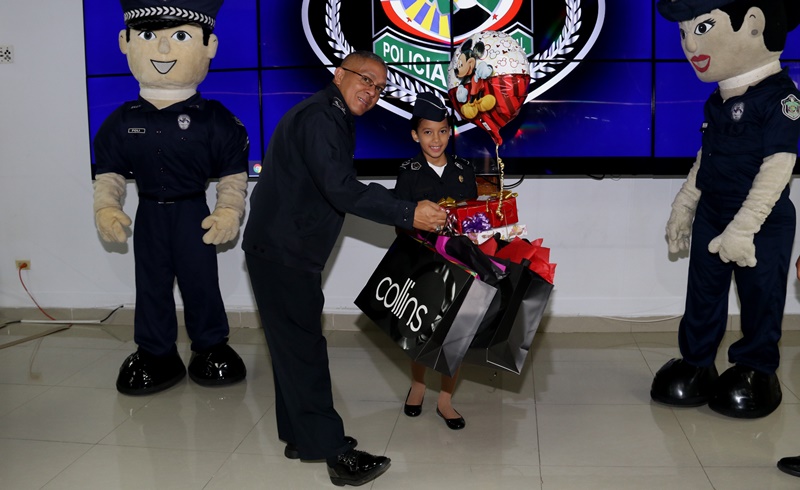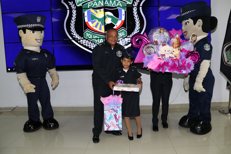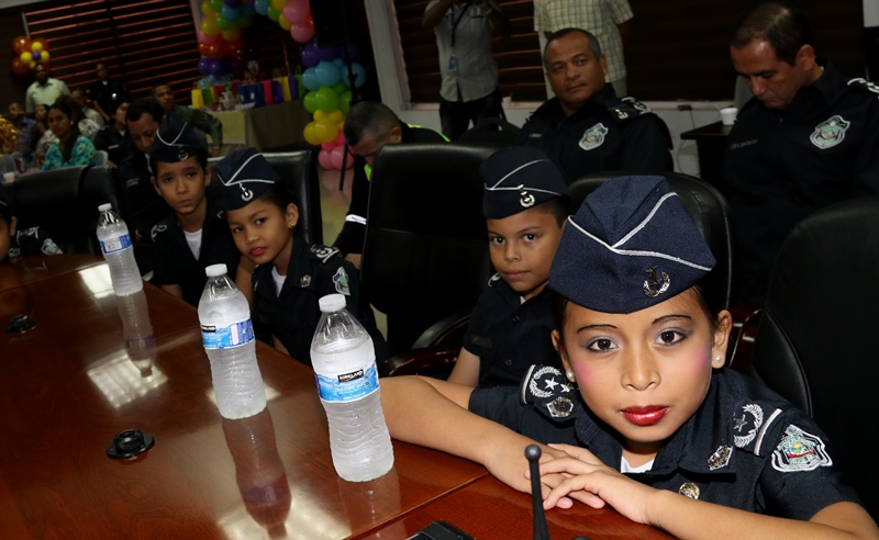 Luciendo uniformes policiales confeccionados a su medida, mientras que que otros de civil, niños y niñas de diferentes puntos de la República reemplazaron a miembros del Directorio de la Policía Nacional en lo que fue el “Directorio Infantil”, celebrando el Día del Niño. La niña Tania Michelle Pineda de 11 años, reemplazó por un día al Director General de la Policía Nacional, Omar Ariel Pinzón Marín como parte de la celebración. La pequeña agradeció a la Policía Nacional el permitirles ser parte de esta por un día y expresó su felicidad de portar este uniforme, uniforme que con orgullo porta su padre quien es miembro de esta institución. “Exhorto a los niños y niñas para que luchen por sus sueños y metas, que estudien para ser mejores personas y un día también pueda tener este privilegio”, indicó durante su discurso en el acto. La alegría y entusiasmo de estos niños de portar el uniforme era evidente en sus sonrisas, cada uno de ellos recibió obsequios y certificados de la mano de sus homólogos al participar de un agasajo que les tenía preparada esta institución. “Nos honra como Policía Nacional tener a los hijos de uniformados hoy ocupando este Directorio Infantil, porque es bien merecido por sus esfuerzos y no solo ellos sino también el de sus padres, que los guían para ser hombre y mujeres de bien”, manifestó el Subdirector General Alonso Vega Pino Los agasajados disfrutaron de los muñecos de dibujos animados como “Dora la Exploradora”, “Diego Go”, “Tiger” entre otros. Durante la actividad estuvieron presentes El Director General de la Policía Nacional, Omar Pinzón, Miembros del Directorio Policial y Padres de Familia. Cada niño recorrió el Dirección y Departamentos a los cuales representaban, para conocer sus funciones en la institución. |
