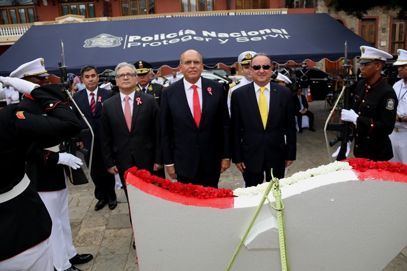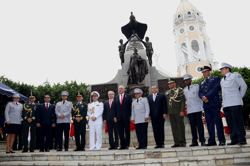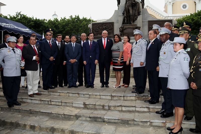 Unidades de la Policía Nacional participaron este 28 de julio en la ceremonia en conmemoración a los 196 aniversarios de independencia de la República del Perú. En horas de la mañana de este viernes 28 de julio, se llevó a cabo una romería en la plaza Bolívar, en el Casco Antiguo de Panamá, donde se colocaron ofrendas florales rindiendo honor al monumento del libertador Simón Bolívar. Los comisionado José Ríos, el Licenciado Víctor Olmedo Moreno, comisionado Esteban Martínez, comisionado Fráncico Asprilla y la mayor Luz Marina Sánchez, se hicieron presentes en el acto. También estuvo presente el embajador de la República del Perú, Mario juvenal López Chavarri. Las Fiestas Patrias del Perú son las celebraciones nacionales anuales que celebran su independencia, después del dominio de España. Constan oficialmente de dos días: El 28 de julio, en conmemoración a la declaratoria de Independencia en Lima por parte de don José de San Martín el acta se firmó el 15 de julio de 1821. El 29 de julio, en honor a las Fuerzas Armadas de la República del Perú y a la Policía Nacional del Perú. |