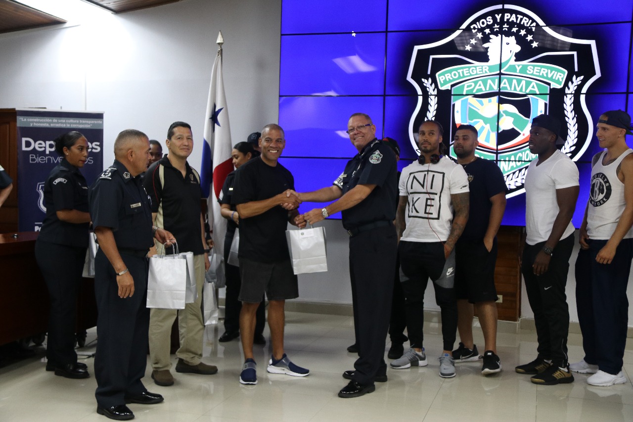 La Policía Nacional de Panamá les dio la bienvenida a los atletas de la Policía de New York, quienes llegaron con mucha energía, para participar en el Torneo Internacional de Boxeo Olímpico que se desarrollará este jueves 3 y viernes 4 en el Fantastic Casino en Albrook. Los uniformados neoyorquinos fueron recibidos por miembros de la Policía Nacional, en el Aeropuerto Internacional de Tocumen. El Comisionado, y jefe de Inspectoría General, Julio Lasso encabezó la delegación policial, que recibió a los 12 púgiles en el salón de conferencia de la sede de la Policía Nacional, en Ancón. “Lo importante de este torneo, no es competir, sino compartir como hermanos”, destacó el Inspector General. En tanto, el Inspector de la Policía de New York, Ernesto Morales, agradeció a la Policía panameña por el grato recibimiento, dijo sentirse en casa. El Torneo Internacional de Boxeo Olímpico, se desarrollará los días jueves y viernes en las ramas masculina y femenina. |