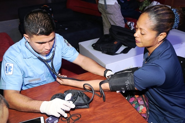 Sin contratiempos se llevó a cabo la ceremonia de pesaje y los estudios médicos de los pugilistas de la Policía de Nueva York, Jamaica y la Policía Nacional de Panamá quienes pelearán en horas de la tarde en el Fantastic Casino de Albrook Mall. Los boxeadores demostraron estar en excelentes condiciones físicas en el examen médico y pesaje previo para los pleitos para esta tarde. El trabajo está hecho. Las condiciones físicas, presión arterial, pulsación, peso previo, entre otros, son prueba que los atletas están listos para enfrentar sus contrincantes. El certamen boxístico, que es organizado por la Policía Nacional de Panamá y la Federación de Boxeo Olímpico de Panamá, se desarrollará los días jueves y viernes en las ramas masculina y femenina. La competencia reunirá al menos a 24 boxeadores que batallarán por alzarse con el triunfo en sus respectivas categorías. |