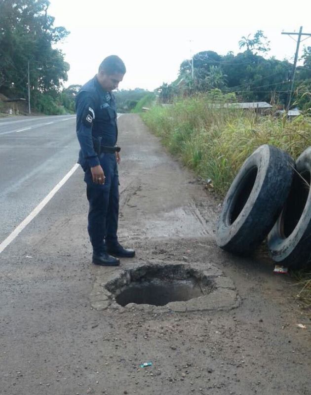 Llantos, sonrisas y gritos de alegría pegaron los residentes de una comunidad ubicada en la provincia de Colón, luego de que Álvaro Sánchez, un agente de la Policía Nacional de Panamá lograse rescatar a un niño que cayó accidentalmente dentro de una alcantarilla de 25 metros de profundidad, ubicada en el sector de Dos Ríos de la Vía Transístmica. El rescate se realizó luego de que aproximadamente a las 8:10 de la noche de este sábado 5 de Agosto mediante una llamada telefónica al 104 de la provincia de Colón se informará del incidente. |