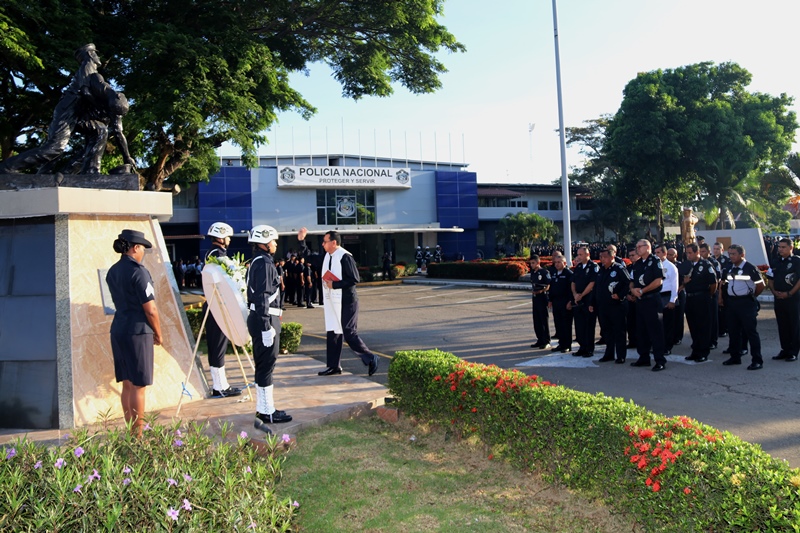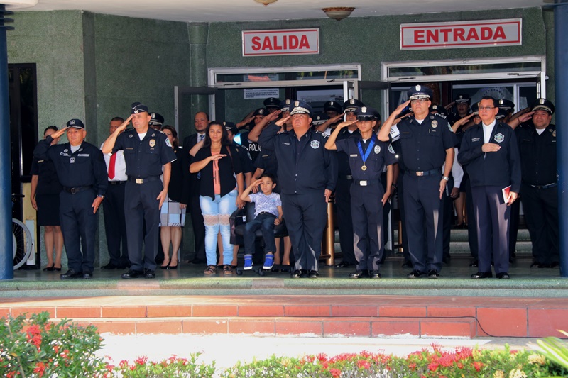 En un solemne acto celebrado en las instalaciones de la Policía Nacional en el corregimiento de Ancón, fue condecorado con la “Medalla al Sacrificio” al agente Álvaro Sánchez quien salvó la vida del niño Jair Antonio Calderón Mora, 9 años de edad, en la provincia de Colón. El Director General de la Policía Nacional Omar Ariel Pinzón Marín felicitó al Agente, por este noble episodio que enaltece la labor policial. “Nosotros creemos en el trabajo que realizan las unidades, quienes llevan al más alto estándar a la institución” destacó el Director General. El jefe policial entregó además al Agente Álvaro Sánchez un presente por el trabajo realizado y una beca para que siga preparándose en beneficio de la entidad. “El Agente es un digno ejemplo a seguir, pues sin importar el riesgo, garantizó la integridad física de este pequeño” destacó. En el acto participó el niño de 9 años Jair Antonio Calderón Mora acompañado por su madre Blanca Rosa Mora. “Agradezco a la Policía por haberme ayudado, fueron un ángel en mi camino” dijo emocionado el pequeño Jair. A su vez el jefe policial acompañado por el directorio colocó una ofrenda floral rindiendo honores a los caídos en cumplimiento del deber, acto que se realiza todos los lunes de cada mes. En este acto participaron uniformados, personal no juramentado y miembros del directorio policial.