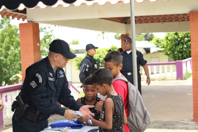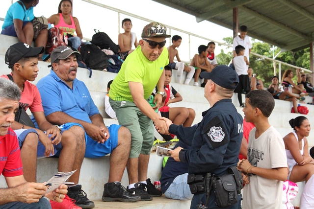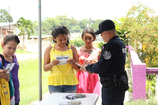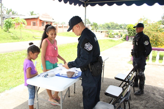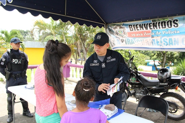 Unidades Policiales del Departamento de Seguridad Ciudadana de la 19ava Zona Policial de Chame, participaron con un stand en la comunidad de Villa del Rosario en el Distrito de Capira. El stand contó con la participación de niños y adultos residentes de la comunidad, a los cuales les brindaron una pequeña docencia en que la prevención es la mejor arma para prevenir el delito. Posteriormente se realizó un volanteo en las residencias y canchas deportivas cercanas, allí se dialogó con los ciudadanos brindándoles tips para que mantengan la seguridad al momento de andar por las avenidas, al dejar su vehículo estacionado y muy importante en la residencia. La Comunidad de Villa del Rosario, mostró su agradecimiento a las unidades policiales por tal iniciativa de llevar a sus hogares las medidas de prevención y hacer la salvedad que un hogar con valores genera una sociedad responsable y respetuosa. |