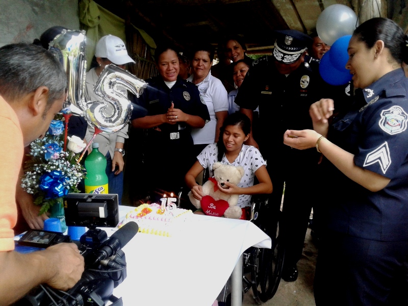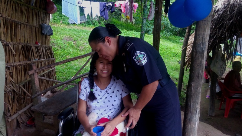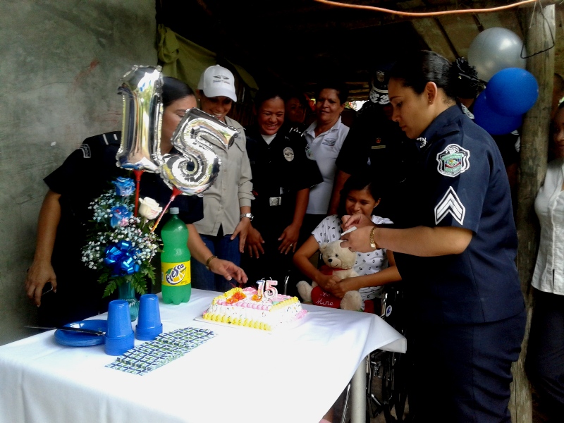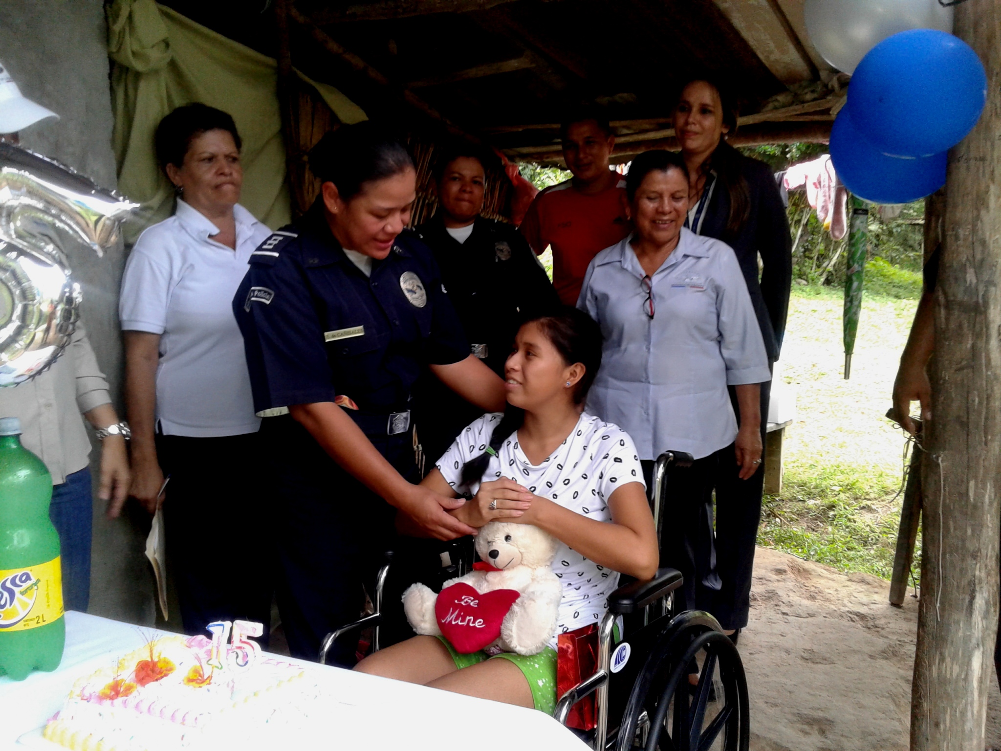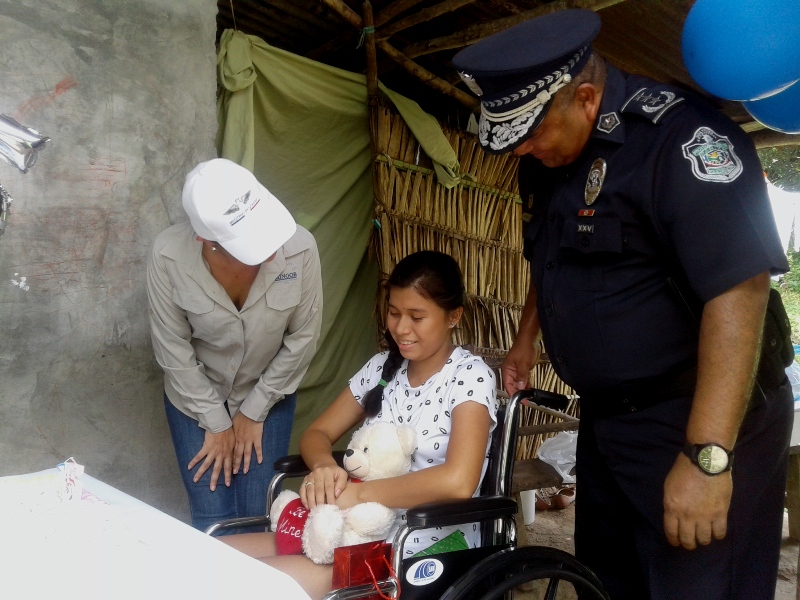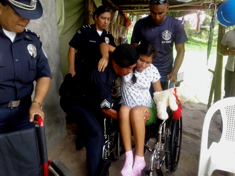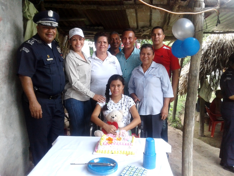 Motivados por el espíritu de solidaridad y sirviendo a las comunidades, unidades de la 2da Zona Policial conjuntamente con funcionarios de la gobernación de la provincia de Coclé, se trasladaron a la comunidad de Naranjal en el corregimiento de Toabré en Penonomé a compartir los 15 años de Cristobalina Álveo, niña que padece el Síndrome de Guillain Barré. El síndrome de Guillan Barré es un trastorno en el que el sistema inmunológico del cuerpo ataca a parte del sistema nervioso periférico, presenta diversos síntomas que incluyen distintos grados de debilidad, sensaciones de cosquilleo, informaban las trabajadoras Social de ambas instituciones que acompañaban. Cristobalina Álveo, con lágrimas en sus ojos agradecía a los uniformados y a los funcionarios por la alegría y la emoción que ella sentía, la misma manifestaba "Nunca había celebrado un cumpleaños de esta manera, y sé que Dios me ayudará a levantarme de esta silla y cumplir con uno de mis sueños ser Policía, diosito y la virgen me ayudarán" termino diciendo la niña. La madre de la niña también agradecida expresaba " No encuentro palabras por lo que están haciendo por Cristobalina, Dios y la Virgen los proteja" dijo la señora María Sánchez, mujer humilde de 40 años y madre de 8 niños de diferentes edades. Acompañaron en esta gran labor, la Gobernadora de la provincia de Coclé la licenciada Sugeydi Flores, el comisionado Aníbal Prados jefe de la 2da Zona Policial, la capitana Elsa Lorenzo, unidades policiales y funcionarios de la casa de gobierno, donde compartieron con la familia haciendo entrega de obsequios, entre ellos una silla de ruedas que le permitirá el traslado de un lugar a otro, ya que el síndrome causa debilidad muscular y paraliza los músculos respiratorios, impidiendo al paciente respirar.