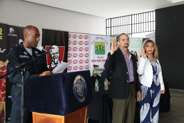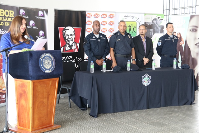 La Policía Nacional inauguró el programa “Comercios Vigilantes” en 2 Plaza Centenial, iniciativa que lleva adelante la Policía Nacional a través del Departamento de Seguridad Ciudadana. La actividad inició con la invocación religiosa por parte del Diacono Armando Mayorga de la Parroquia Nuestra Señora de la Esperanza, quien resaltó la labor que realiza la Policía Nacional de la mano con los comerciantes. Por su parte, el jefe del área de Condado del Rey, comisionado Francisco Asprilla juramentó a los coordinadores y suplentes, de acuerdo a lo establecido en la Resolución de Gabinete, número 34 del 21 de Junio de 2,000, por lo que adoptan fundamentos de la política panameña de seguridad en donde el estado regula y organiza la participación ciudadana en la lucha contra la criminalidad. Los recién juramentados Ersilia de Saavedra y René Escobar, se comprometieron a trabajar y servir a la comunidad de manera honesta, transparente y cumplir fielmente las normas que establece el programa. “Día a día sigue creciendo los diferentes programas que desarrollamos, acción que sin la ayuda de los ciudadanos no sería posible e insto al resto de las personas sumarse para así disminuir los hechos delictivos en el país” destacó. Posteriormente, con las tonadas de la banda de música de la Policía Nacional, develaron la placa de Comercios Vigilantes puesta en la parte principal del centro comercial, demostrando que están organizados y brindarles más seguridad a los visitantes. En la 8va Zonal Policial de Condado del Rey son más de 20 negocios activos que pertenecen al programa Comercios Vigilantes. |