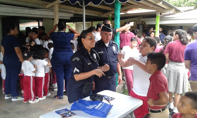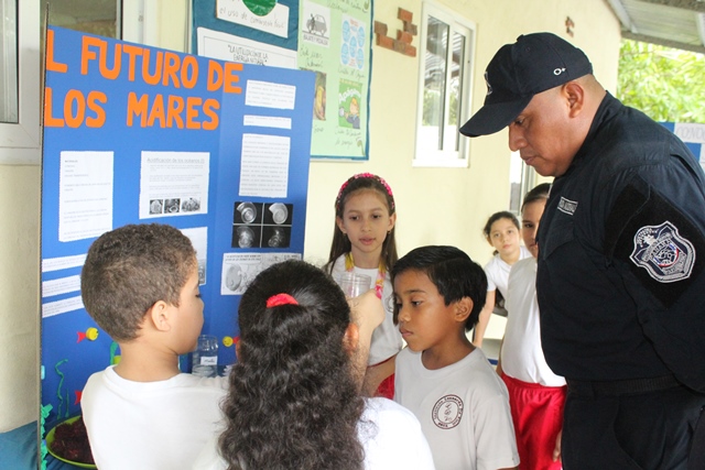 Unidades de la 19ava Zona Policial de Chame participaron en la feria científica realizada en el Instituto Bilingüe Leonardo Da Vinci, donde realizaron exposiciones de la contaminación de los océanos. Esta actividad tuvo como lema “Protegiendo los Océanos y Disfrutemos sus Riquezas”, desarrollada por niños que cursan desde Pre Kinder hasta el Décimo Grado, todos fueron participe con exposiciones muy instructivas dando a conocer como el ser humano contamina los océanos. Las unidades Policiales interactuaron con los estudiantes en cada una de sus maquetas, exposiciones y pruebas científicas que desarrollaron según sus edades. De igual manera aprovecharon la ocasión para brindarles consejos a los niños de Seguridad Peatonal al momento de cruzar una calle o conducir sus bicicletas.