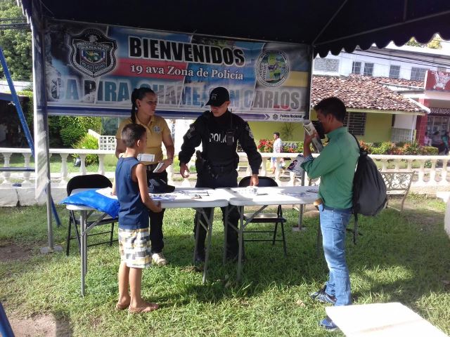 Unidades del Departamento de Seguridad Ciudadana y Reclutamiento de la 19ava Zona Policial de Chame participaron con un Stand en la gira de Asistencia al Pescador organizada por la Autoridad de Recursos Acuáticos (ARAP) La feria se realizó en el parque principal del distrito San Carlos a eso de las 09:00 horas, en dónde las unidades policiales realizaron un volanteo brindando información a los participantes de las medidas de seguridad que se debe tener al momento de salir de sus residencias para no ser víctimas de hurto. También la ocasión se prestó para orientar al público presente de los requisitos para ingresar a las filas de la Policía Nacional en tal caso que desearan ingresar o tuviesen algún familiar interesado. Esta actividad conto con la participación de Gira del Asistencia al Pescador (G.A.P), Ministerio de Salud (M.I.N.S.A), Ministerio de Desarrollo Agropecuario (M.I.D.A), Aeronabal, Bomberos, entre otros.