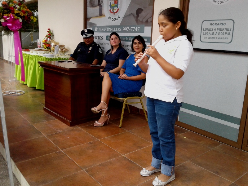 Más de 52 locales comerciales se verán beneficiados con la inauguración del programa Comercios Vigilantes de la Policía Nacional en la Plaza Harinos Mall en Penonomé. El acto que se dio en los terrenos de la plaza, contó con la participación de la niña María Celeste Castillo de 9 años de edad invitada de la escuela secundaria Santo Domingo de Penonomé, quien deleitó a los presente con notas instrumentales de su flauta dulce al ritmo de la cocaleka, la angostura y el popular despacito. El señor Cesar Salazar propietario de la Plaza agradeció a la Policía Nacional por la disponibilidad y la buena comunicación, que existe con los miembros de la Policía, sobre todo por la implementación del programa, que brindará una herramienta para prevenir cualquier hecho delictivo, fueron entre otras las palabras de Salazar. En la actividad, se realizó la juramentación del programa, que estuvo a cargo del Sargento Algis Bethancourth, quien expresó, a los miembros del programa que el objetivo principal es garantizar la seguridad a través de la prevención. Por su parte el comisionado Aníbal Prados, jefe de la 2da Zona Policial, se dirigió a los presentes diciendo que, esta inauguración de Comercios Vigilantes, permitirá una estrecha colaboración preventiva con el apoyo de la unidades policiales, asegurando barrios, comunidades y Plazas más seguras. Finalmente, los presentes fueron invitados a la develación del letrero y la colocación de logos y calcomanías del Programa Comercios Vigilantes. Participaron en este acto funcionarios de la Notaria Pública de la provincia de Coclé, coordinadores del programa e invitados. |