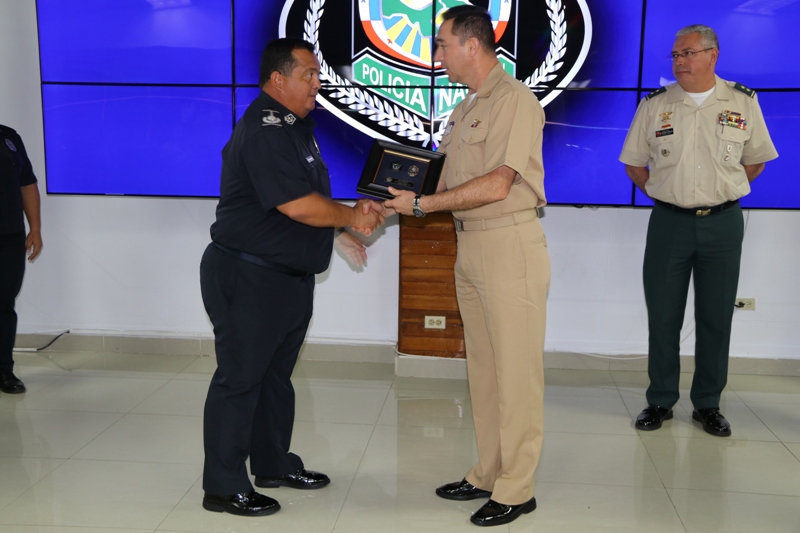 El Curso de Estado Mayor 2017 denominado “Prácticas Geoestratégicas Internacionales” de la Escuela Superior de Guerra de Colombia, visitaron la sede de la Policía Nacional de Panamá ubicada en el corregimiento de Ancón. En su visita fueron recibidos por Omar Pinzón, director de la primera institución de seguridad, quien agradeció que escogieran a nuestro país para realizar esta gira de estudio. “Como es un viaje de estudio, para nosotros es muy importante compartir algunas experiencias, como Panamá juega su rol en defensa, nosotros hemos entrenado a nuestras unidades, para que cumplan este tipo de tareas” destacó Pinzón Marín. Durante la presentación el comisionado Jorge Escobar, director Nacional de Docencia, hablo sobre las estrategias que son utilizadas en materia de seguridad, de la zona de tránsito y la evolución de Panamá. “Es importante que sepan que la Seguridad en Panamá se compone de 3 eje: Seguridad Ciudadana, Seguridad Territorial y Protección de la Gobernabilidad Democrática y Libertada Ciudadana”, señaló Escobar. Este Curso de estado Mayor tiene una duración de un año y está compuesto por 30 oficiales, 29 de Colombia y 1 de México a cargo del Brigadier General Helder Fernando Giraldo Bonilla, quienes para finalizar dicho curso realizan una gira de estudio a un país de su elección. En este acto se realizó una presentación folklórica por parte del conjunto típico de la Escuela de Oficiales Doctor Justo Arosemena, quienes bailaron dos piezas entre ellas El Punto, que fue aplaudida por cada uno de los presentes. El subirector de la Policía Nacional, Alonso Vega Pino, el Inspector, General Julio Lasso; el Secretario General Jonny Rangel, el director Nacional de Operaciones el comisionado José Ríos y el comisionado Joaquín Vergara director Nacional de Telemática, acompañaron al director en esta visita. Para finalizar se realizaron entregas de obsequios institucionales, por parte del señor Omar Pinzón hacia el General Giraldo Bonilla en agradecimiento, además el director recibió varios obsequios por parte del Curso de Estado Mayor. |