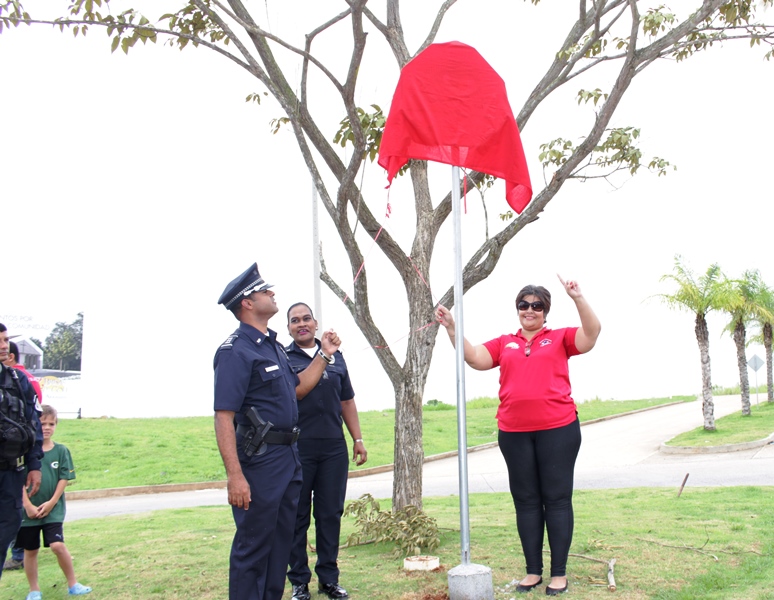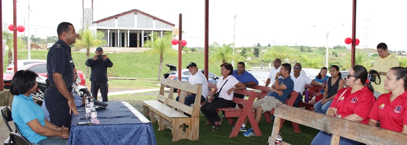 Cinco calles de la Urbanización Brisas del Golf en Arraiján, se sumaron este domingo 17 de septiembre a los programas preventivos de la Policía Nacional para combatir de la mano los hechos delictivos. La ceremonia de inauguración fue presidida por el Capitán Ricardo Davis, en representación del Jefe de la Zona, quien felicitó a los residentes por la acertada decisión de unirse a los programas preventivos y los instó a continuar manteniendo la comunicación entre vecinos y la Policía Nacional y a poner en práctica las recomendaciones brindadas por el personal de Seguridad Ciudadana y a hacer buen uso de los implementos de seguridad. El acto contó con la asistencia de la Profesora Mónica Clark, en representación de la Directiva distrital de los programas de Seguridad Ciudadana, funcionarios de la Alcaldía de Arraiján y representantes de las calles 10,11,12,13, y 19. |