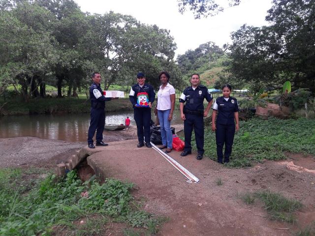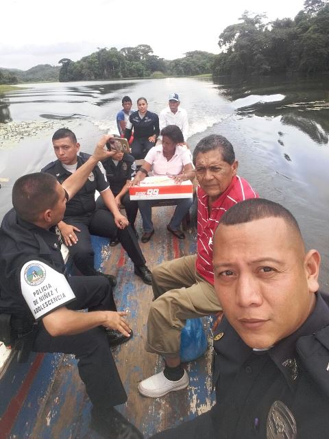 Unidades de la Policía Nacional de servicio en Niñez y Adolescencia de la Zona Policial de Colón, compartieron momentos de alegría con los niños de la comarca Embera Quera, en el sector del Río Gatún. Los policías acompañados de la maestra Elvia Lawrence, llegaron a la comunidad atravesando el río Gatún, ya que esta comunidad bastante apartada, donde le llevaron piñata y golosinas a los niños. El subteniente Luis González, señaló que este tipo de acción la realizan cumpliendo con la misión de proteger y servir a la comunidad y en especial a los niños. |