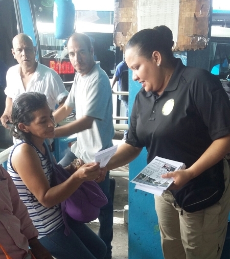 Unidades policiales de la Dirección de Investigación Judicial (DIJ) juntos a funcionarios del Ministerio Público llevaron a cabo una jornada de volanteo, la tarde de este viernes 27 de octubre del presente año, en los principales centros comerciales y terminales de transporte de David en la Provincia de Chiriquí. La acción tuvo como objetivo brindar consejos de seguridad a los residentes y visitantes de la provincia en cuanto a la prevención de delitos como estafas, robos y hurtos. De acuerdo con el mayor Teruo Alvia, jefe de la SubDIJ en Chiriquí, durante el volanteo se les orientó a las personas, a cómo y dónde denunciar en caso de ser víctima o conocer algún hecho delictivo. “Es importante que todos sepan dónde acudir a la hora de un delito, ejemplo tener los números de la Policía más cercana o integrarse a los programas de Seguridad Ciudadana de la Policía Nacional”, agregó. El mayor Alvia junto a la Fiscal Superior Roxana Terrero y las fiscales de Litigación Primaria Jessica Rosas y Katiuska Rojas, participaron del programa radial La Exitosa, donde hablaron de igual forma sobre la importancia de la denuncia y la prevención primaria que debe tener cada ciudadano. La Policía Nacional exhorta a los ciudadanos residentes y visitantes en Chiriquí a denunciar los hechos delictivos llamando al 104 o a través de los números 775-5365, 775-8793 (PN), 775-3264 (DIJ) y al 777-6900 (MP). |