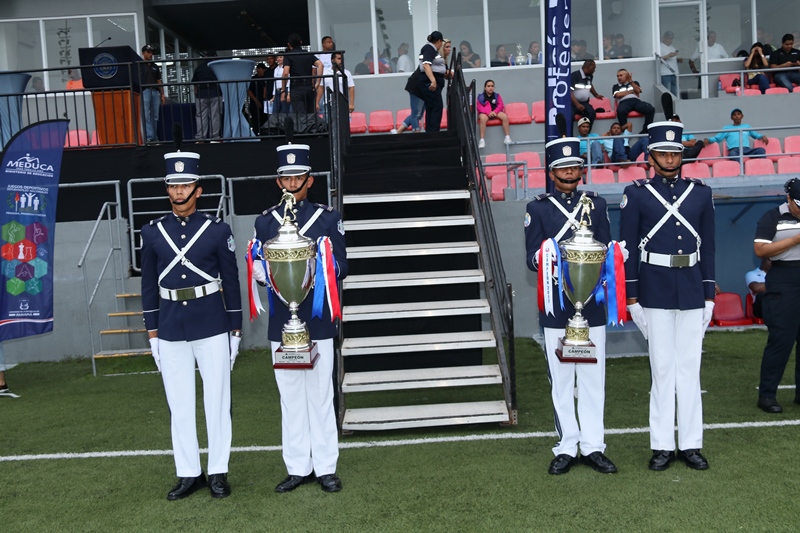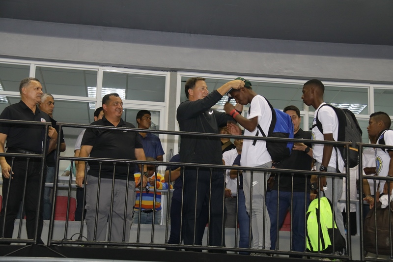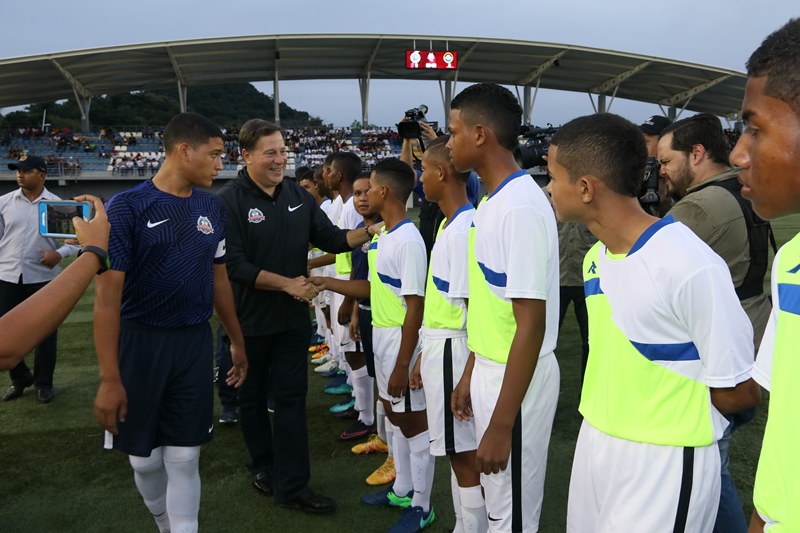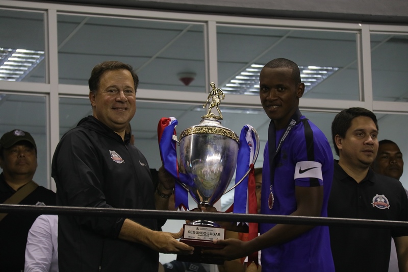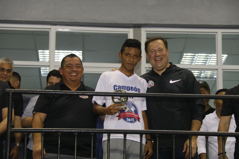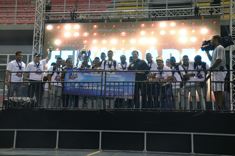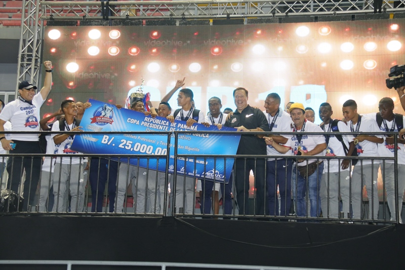 El presidente de la República Juan Carlos Varela presidió la clausura de la tercera versión de la Copa Presidente en donde el IPT de San Miguelito se coronó campeón de la categoría Sub-15 y el Instituto Técnico Don Bosco en la Sub-18. Varela indicó que la Copa Presidente es un certamen que tiene que quedar, lo cual calificó como “Un gran logro para los jóvenes del país”, ya que incentiva a los estudiantes a participar en las actividades deportivas para que se conviertan en hombres y mujeres de bien. En este acto también estuvieron presentes, el Director Técnico de la Selección de fútbol Hernán Gómez, el Ministro de Seguridad Alexis Bethancourt y el Director General de la Policía Nacional Omar Ariel Pinzón Marín, además del Director de Pan Deportes Mario Pérez, El Ministro de Vivienda Mario Echelecu, representantes del Ministerio de Educación, e invitados especiales Por su parte, Director General de la Policía Nacional enfatizó que esta actividad en su tercer año consecutivo permite a los jóvenes demostrar su amor por el deporte acompañado de los valores, el trabajo en equipo y sobre todo la convivencia pacífica. Para el Director Técnico de la selección nacional, Hernán Gómez, su visión se proyecta en el futuro y puede verlos como mejores personas, hijos, compañeros, estudiantes y buenos profesionales. “Por esto hay que apoyarlos, es uno de los torneos más lindos que hay”, comentó “El Bolillo” Gómez, formando personas primero y luego convertirlos en deportistas. El público presente disfrutó de un show de artistas del género Reggae, como Akim, Real Phantom y Eddy Lover, además de la participación de los integrantes de un grupo de Gimnasia de la Escuela IPT de Capira, quienes fueron aplaudidos por sus destrezas y habilidades. Seguido de una gran despliegue de fuegos artificiales que iluminó el cielo. Ambos ganadores de este torneo nos representarán en la “Copa Disney 2018”, donde Panamá ha salido triunfador por dos años consecutivos en la categoría Sub-18. |