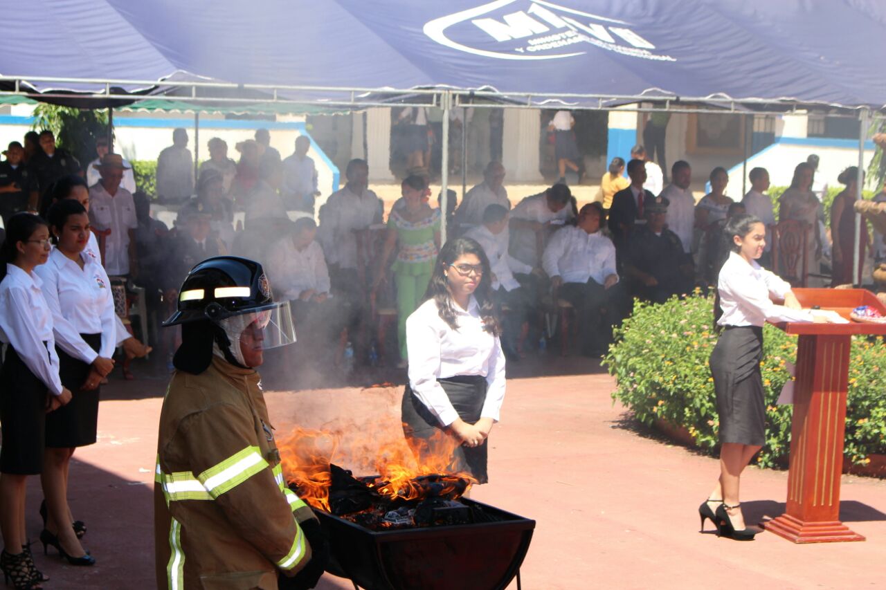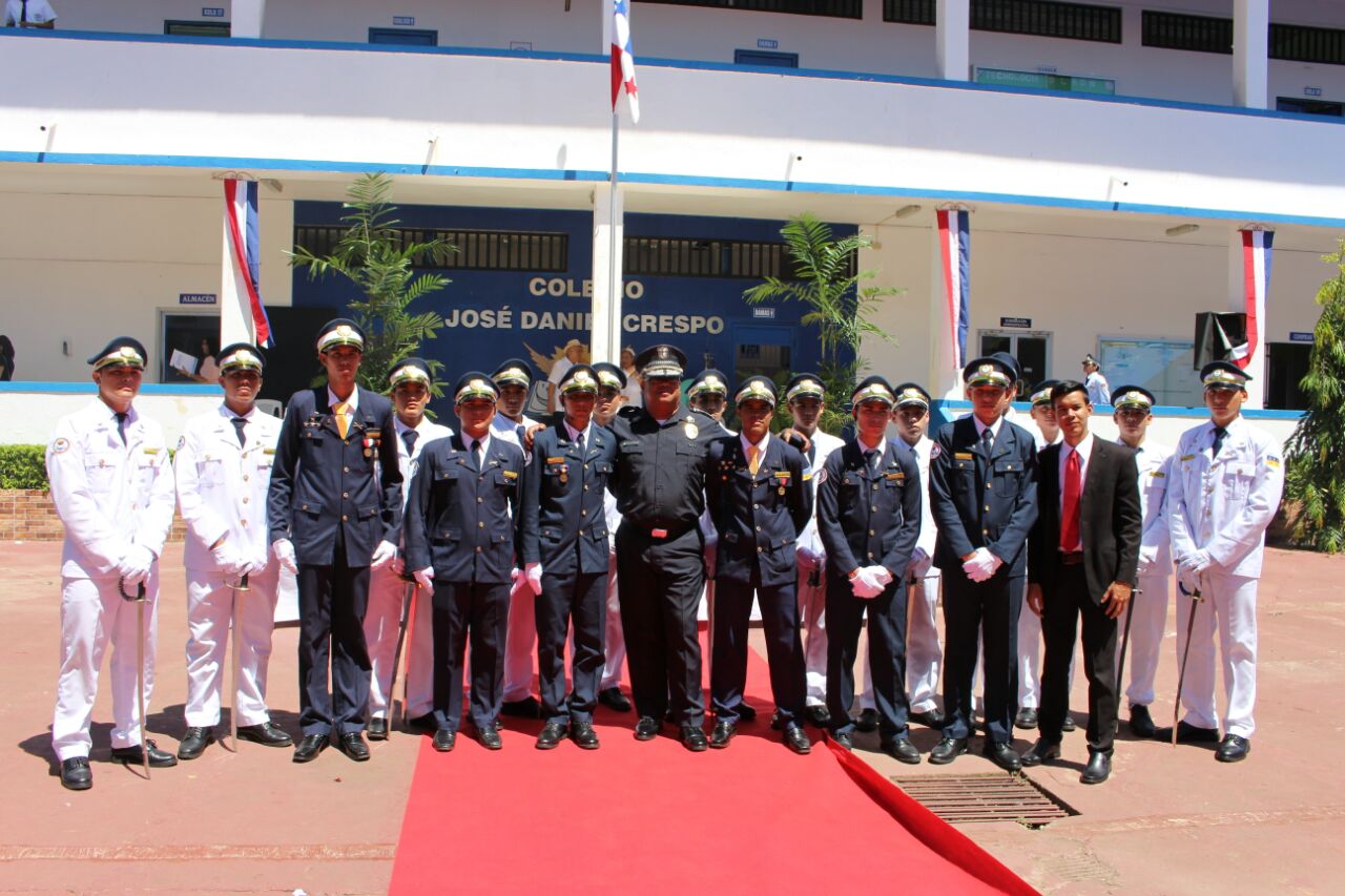 Unidades de la Policía Nacional de servicio en la Zona de Policía de Herrera participaron en el acto de ceremonia de incineración de Bandera Nacional en desuso, realizado en el Colegio José Daniel Crespo. En el acto estuvo presente el comisionado Urracá De La Hoz, autoridades de la provincia, la banda del colegio y ciudadanos sobresalientes del distrito de Chitré. Cabe señalar que esta es la primera cremación de banderas que se realiza en este plantel educativo donde estuvo la presencia de la policía nacional como parte del protocolo en tan significativo acto de símbolos patios. La Policía Nacional continuaran participando en todos los actos donde se les rinde honor a los símbolos patrios de nuestro País. |
