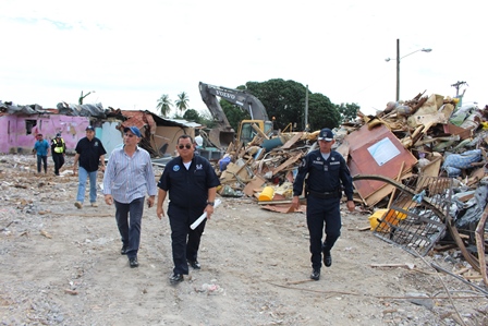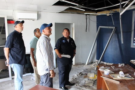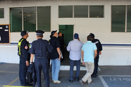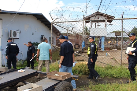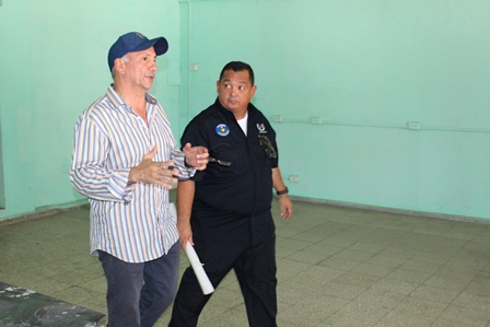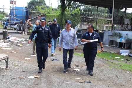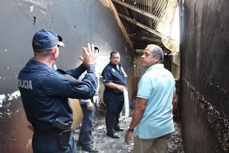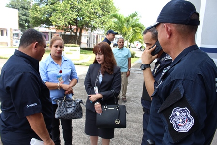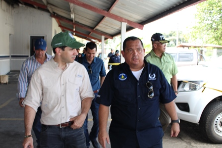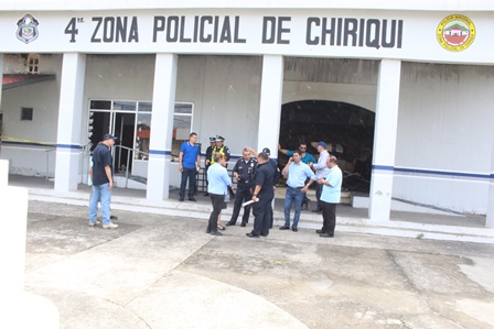 El Director General de la Policía Nacional, Omar Ariel Pinzón Marín, visitó el pasado martes 31 de octubre las instalaciones de la Estación Policial de David, con la finalidad de hacer una inspección con los ingenieros de la Policía Nacional, para evaluar los daños estructurales que tuvieron los edificios del área administrativa por el incendio ocurrido en días pasado. En este recorrido estuvieron presentes el Vice Ministro de Seguridad Pública, Licenciado Jonathan Del Rosario, el Gobernador de la provincia de Chiriquí, Licenciado Hugo Méndez, el Director de Operaciones del Tránsito de la Policía Nacional, Comisionado Ismael Herrera y el Ejecutivo de la 4ta. Zona Policial de Chiriquí, Comisionado Teófilo Moreno. Aprovecharon la ocasión para realizar una inspección con los Arquitectos de la Policía Nacional en la antigua Cárcel Pública de David. El Señor Gobernador de la provincia, manifestó que se espera la llegada de nuevas unidades para reforzar la seguridad en la provincia. Mientras que el Comisionado Ismael Herrera, encargado de las Operaciones del Tránsito a nivel nacional, agregó que se enviarán más refuerzos de unidades policiales a la Sub-dirección de Operaciones de Tránsito en la provincia, con el objetivo de disminuir los accidentes de tránsito. El Vice Ministro de Seguridad Pública, Licenciado Jonathan Del Rosario y el Director General de la Policía Nacional, Omar Ariel Pinzón Marín, conversan y hacen entregas de implementos de seguridad a la unidades policiales que laboran en la Sub- Dirección de Operaciones del Tránsito de la provincia de Chiriquí. Por otra parte, el Comisionado Omar Pinzón, Director de la Policía Nacional, hizo entrega a las unidades policiales de la 4ta. Zona Policial de Chiriquí equipos policiales para fortalecer las estrategias de seguridad en la provincia.