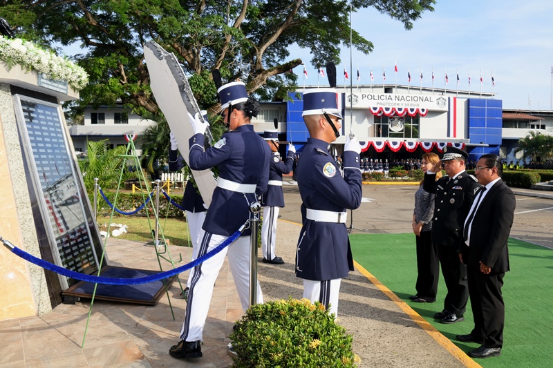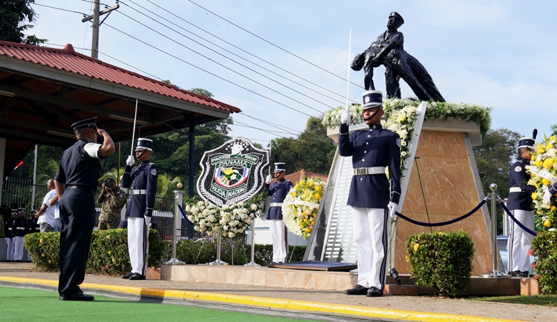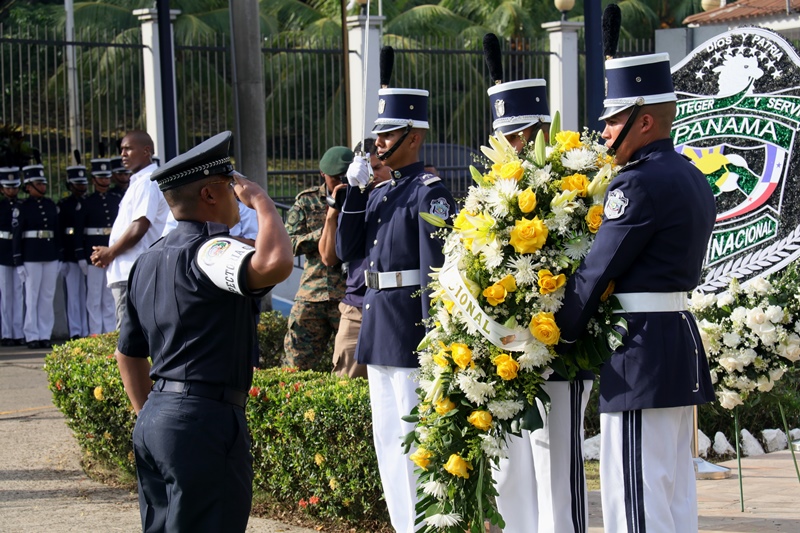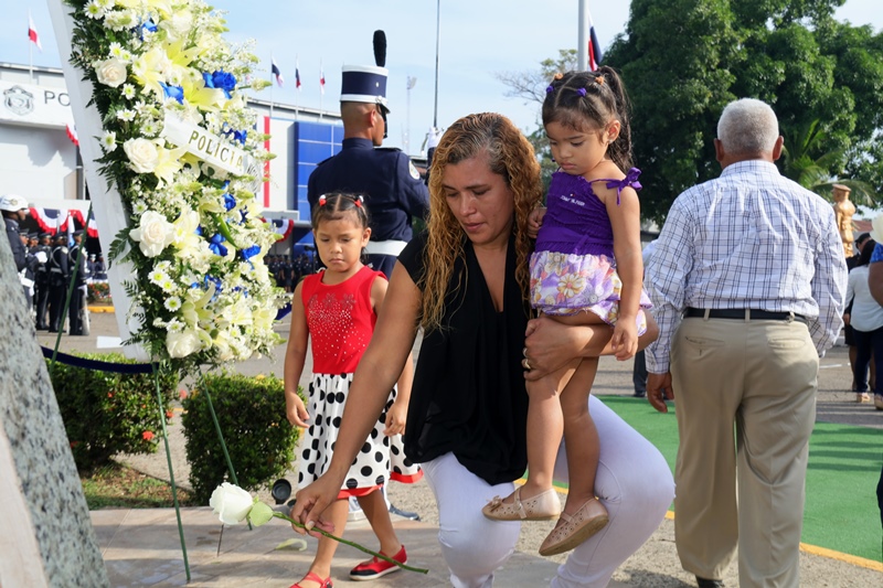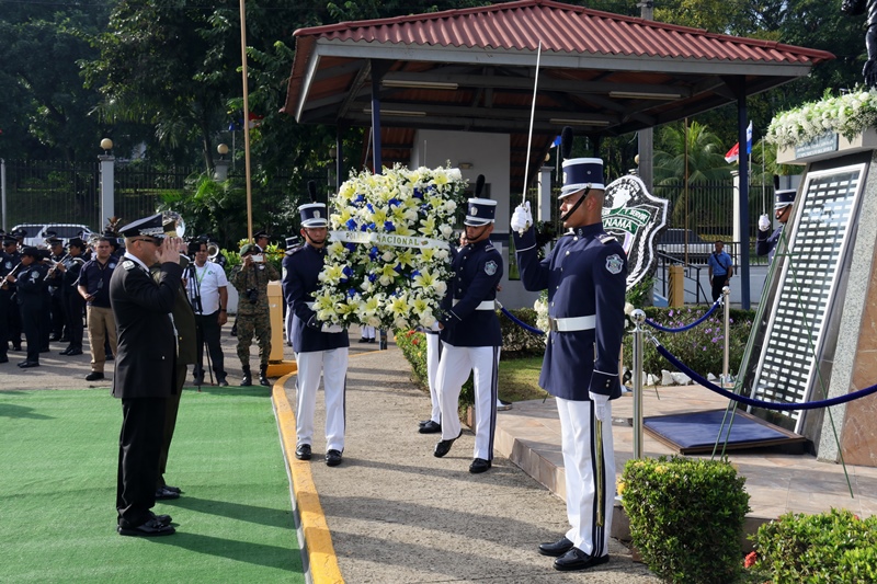 “Con profundo dolor hoy recordamos a nuestros compañeros caídos, familiares y amigos que nos han dejado huellas imborrables y nuestro compromiso es honrarlos, con mucho trabajo y sacrificio, porque ellos son ejemplo de la vocación de servir a la patria”, expresó el Director General de la Policía Nacional, Omar Ariel Pinzón Marín durante el homenaje a los caídos en cumplimiento del deber, realizado en la sede de la institución, ubicada en Ancón. El jefe policial agradeció a los familiares por el apoyo brindado, asegurando que este sacrificio no será en vano, muy al contrario, su legado como luz, se mantiene encendida en las nuevas generaciones. Acompañado por el Secretario General del Ministerio de Seguridad, Aarón Pérez, miembros del directorio de los estamentos de seguridad y familiares, el Director General de la Policía Nacional colocó la ofrenda floral en el monumento que honra la memoria de aquellos que entregaron su vida como mayor prueba de lealtad y amor a la patria. El toque de silencio y los 21 disparos de salva, profundizaron esta ceremonia solemne como expresión de respeto y reflexión. Desde 1990 a la fecha 146 unidades, han fallecido en cumplimiento del deber, como la mayor muestra de lealtad a la Patria, a los valores e ideales que robustecen los pilares de la Policía Nacional. |