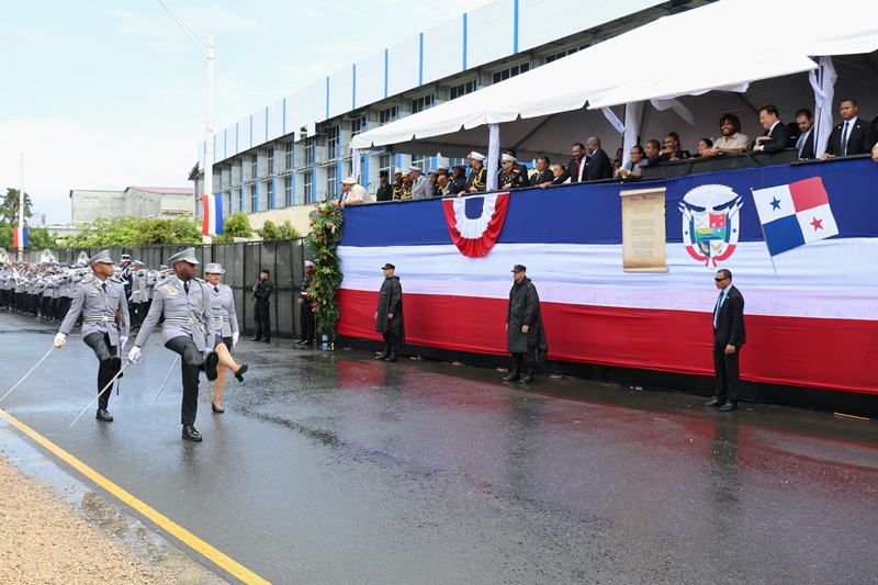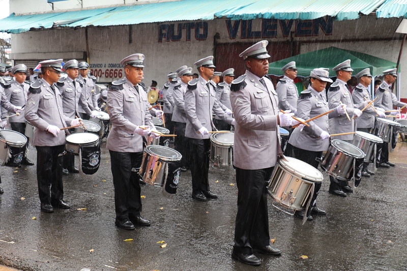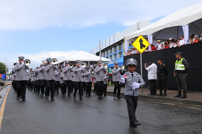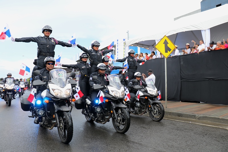 Este 5 de noviembre, día que se consolidó la separación de Panamá de Colombia, la delegación de la Policía Nacional con mucho color y patriotismo, celebró con el pueblo colonense, participando del desfile en honor a la Patria. El Presidente de la Republica Juan Carlos Varela en compañía del Seleccionado de futbol panameño Román Torres y Ministros de estados presidieron los actos protocolares. La representación policial fue una de las primeras delegaciones, dando inicio al acto cívico, donde la lluvia, no fue obstáculo para que las unidades demostraran con honor y disciplina su amor por el país. Con 78 años de existencia, la Banda de Música de la institución, encabezada por el Tambor Mayor el Sargento Segundo Franklin Jaramillo, interpretaron diversas letras musicales, que eran aplaudidas por el público presente. El Subdirector General Alonso Vega Pino acompañado del Comisionado Benjamín Sambrano jefe de la Zona de Policía de Colón y miembros del Directorio policial, estuvieron presentes durante esta conmemoración histórica. Los Niños y Niñas de Centro de Atención Integral para la Primera Infancia de la provincia de Colón “Los Pininos” que conformaban una banda de Guerra, eran elogiados, por quienes observaban el desfile a la altura de la tarima presidencial, demostrando su talento con los instrumentos musicales. Unas diecinueve unidades de la Sección Motorizada de la Dirección Nacional de Operaciones de Tránsito, al mando del Teniente Ameth Vega, realizaron acrobacias y destrezas. Las principales calles de la ciudad de Colón presenciaron la participación lucida de la delegación de la Policía Nacional, donde los hombres y mujeres de uniforme, dieron el todo en esta celebración de las fiesta patria, en la Costa Atlántica. Cientos de colonenses y de otras provincias, además de extranjero se aproximaron a las calles a celebrar este día, deleitándose con la presentación de 27 colegios particulares y oficiales, además de 5 colegios invitados y 22 bandas independientes.