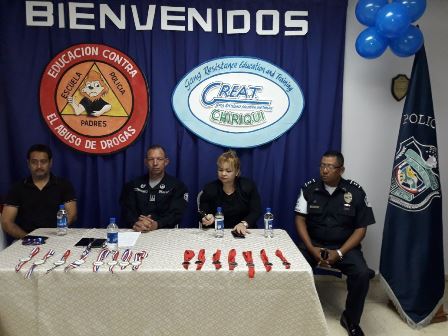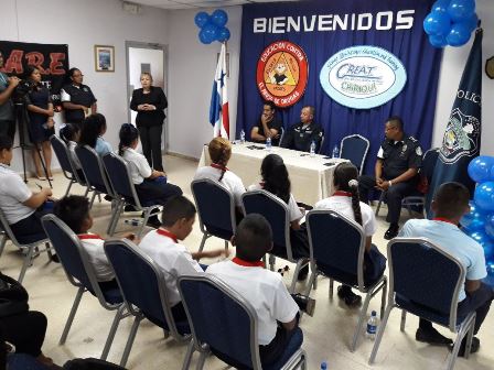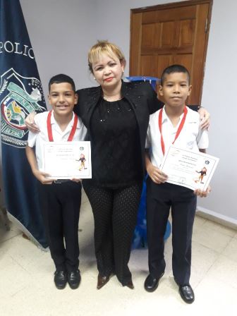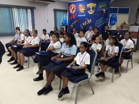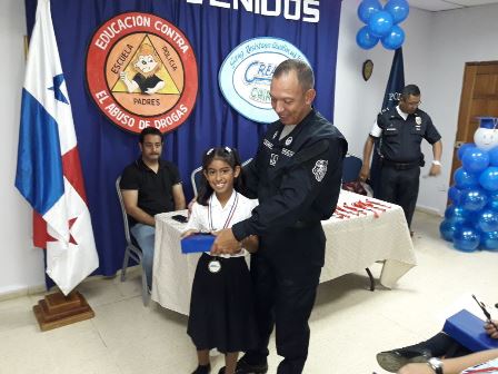 La Policía Nacional hizo entrega de certificados y medallas a dieciséis estudiantes de diversos centros educativos de la provincia (David, Bugaba y de la Comarca), quienes pertenecen a los programas de prevención que lleva adelante el Departamento de la Policía de Niñez y Adolescencia de la 4ta. Zona. Esta actividad se llevó acabo en las instalaciones de la Cámara de Comercio e industria de Chiriquí y estuvieron presente el Comisionado Teófilo Moreno, Ejecutivo de la 4ta. Zona Policial de Chiriquí, la Licenciada Margarita Camargo Jueza de Niñez y adolescencia, Licenciado Luis Whatt de la Cámara de Comercio, el Teniente Jorge Gallardo encargado de la Policía de Niñez y Adolescencia, agentes uniformados, padres de familias y estudiantes. Estos jóvenes pertenecen a los Programas de Prevención de Educación para la Resistencia al Uso y Abuso de las Drogas y la Violencia "DARE" y el de “Educación y Entrenamiento para la Resistencia a las Pandillas" denominado G.R.E.A.T quienes fueron distinguidos por su buena conducta y haberse destacado dentro de sus grupos. Las niña Belén Pitty de la Escuela de Nuevo Vedado, agradece a la Teniente María González, instructora del Programa G.R.E.A.T, por haberle dado los talleres donde se les dio consejos, recomendaciones para evitar la violencia, las pandillas el bulín y evitarles cualquier problema a sus padre. Igualmente, una estudiante del Programa DARE, habló sobre el tema “Valores Ético y Morales”, representando a las Escuelas de Santa Cruz, José María Roy y el Centro Básico General Vidal Barroso y afirma que debemos respetarnos, sentirnos bien con lo que somos. La Policía Nacional a graduado 1,749 estudiantes de diferentes centro educativo de la provincias, nos orgullece brindarle a cada uno de ustedes los diferentes programas que existen en desarrollo humano orientado específicamente para fortalecer los valores la actitud de querer hacer las cosas correctas, los felicito a todos por haber participado en este curso. Los padres de familia y los docentes tienen que involucrarse más y debemos evitar la deserción escolar, porque cuando un niño no se educa no tiene acceso a ninguna área de trabajo digno y entonces son víctima de las pandillas para sumarlos, acotó el ejecutivo de Zona. “Felicitamos a los instructores ya ha realizado una tarea ardua durante todo el año, a la Cámara de Comercio e Industria de Chiriquí por estar comprometido con los niños y nuestro respeto a la labor que está haciendo la Jueza de Menores en la Provincia”. La Licenciada Margarita Camargo, Jueza de Niñez y Adolescencia, manifiesta que debemos tomar decisiones en nuestra vida, no renuncien a su sueño, sea feliz y todo hágalo con amor. “Agradece a la Policía Nacional a la Cámara de Comercio y a sus instructores por la labor que están realizando por la niñez panameña en inculcarles los valores morales, dijo la licenciada Camargo. |