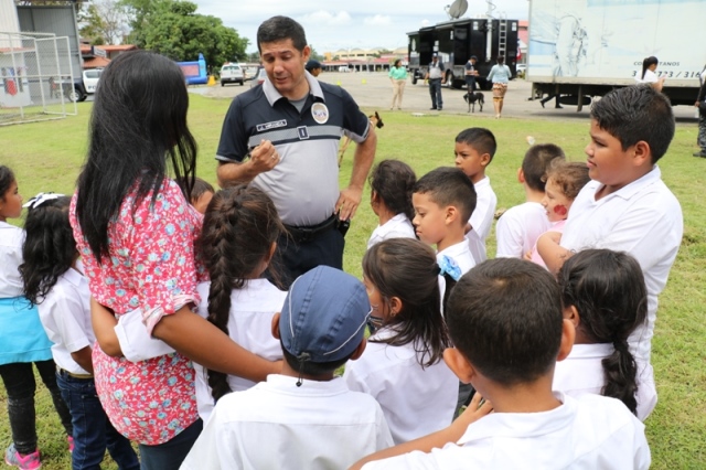Dieciocho niños y niñas de segundo grado del Centro Educativo Básico General Llano Marín de la provincia de Coclé, visitaron por primera vez las instalaciones de la sede policial en Ancón este jueves 16 de noviembre. Los pequeños recorrieron las instalaciones de la institución donde los esperaban muchas sorpresas como brinca brinca, golosinas, pinta caritas, el show de la Unidad Canina y un divertido paseo en moto por parte de las unidades Linces. Luego de esta visita los niños hicieron un recorrido por Panamá La Vieja y El Casco Antiguo en compañía de unidades de la Policía de Turismo que se encargaron de educar sobre la historia de nuestro país. “Nos sentimos muy agradecidos por la atención que nos han brindado, el aporte de las unidades policiales para que esta actividad fuera tan bonita y principalmente el conocimiento brindado a niños que pertenecen a las Aldeas SOS” expresó Arelys Franco, Maestra de la escuela. Esta gira educativa organizada por el centro educativo, se realizó con el fin de conocer más a fondo la labor que realiza la Policía Nacional a su vez inculcar los buenos valores, admiración y respeto por la labor policial.