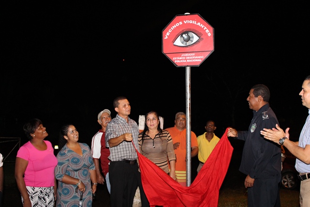 Miembros de la Comunidad de Lotes del Carrizal en Nuevo Emperador, Distrito de Arraijàn inauguraron este viernes 17 de noviembre el programa preventivo Vecinos Vigilantes que lleva adelante de la Policía Nacional. Esta actividad contó con la participación del Comisionado Roger Rodríguez Ejecutivo de la 13ava Zona Policial de Arraijàn, Licenciado Alexis González presidente distrital de Vecinos Vigilantes quienes agradecieron a los residentes de por permitir que la Policía Nacional trabaje de la mano junto a ellos. Seguidamente se realizó la el toque de timbres y develación del letrero de Vecinos Vigilantes en compañía de todos los presentes. Los coordinadores de Lotes del Carrizal aprovecharon la ocasión para expresar su agradecimiento a las autoridades presentes por el apoyo brindado para la ejecución del programa.