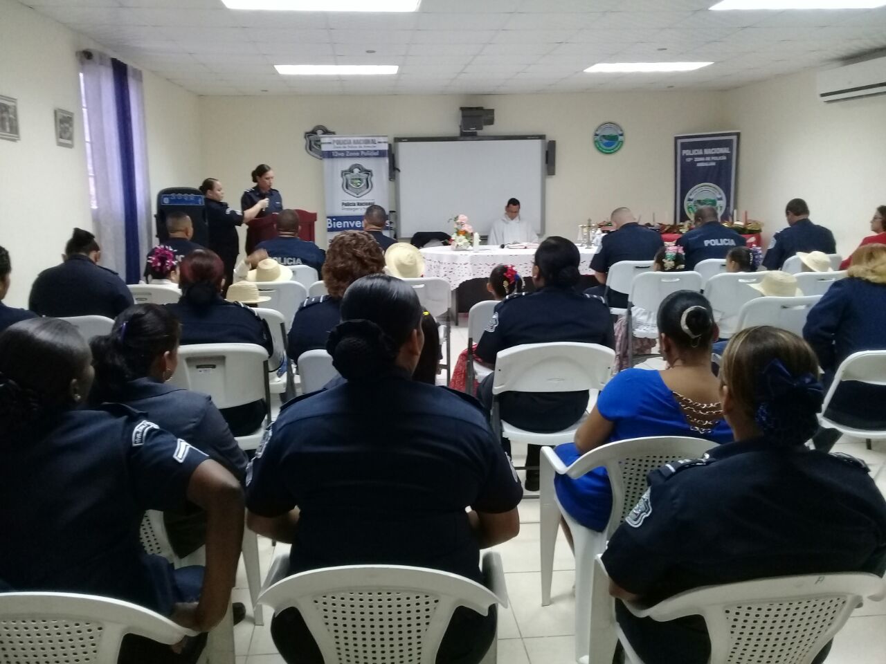 A muy tempranas horas de este martes 21 de noviembre, unidades policiales de la 13ava Zona Policial de Arraiján, se dieron cita en la Eucaristía realizada en la Sede de esta zona. Seis coronas de adviento fueron presentadas por las áreas policiales, ante el Padre Edgar Flores Capellán de la Policía Nacional, quien ofreció su bendición a las coronas y de igual manera hizo énfasis en el significado y uso de cada una de las velas, de igual manera se realizó la entrega de varias canastas de comidas con el fin de ayudar a los más necesitados. La Misa conto con la presencia de Comisionado Luis navarro, Jefe de la Zona Policial de Arraiján y el Comisionado Roger Rodríguez ejecutivo de la Zona quienes dieron unas breves palabras de agradecimiento a los presentes. Esta actividad culmino con la presentación de los niños del conjunto típico del Centro de Atención Integral para la Primera Infancia ( Mi alegría de Chorrera, quienes bailaron y cantaron tres piezas musicales muy conocidas.